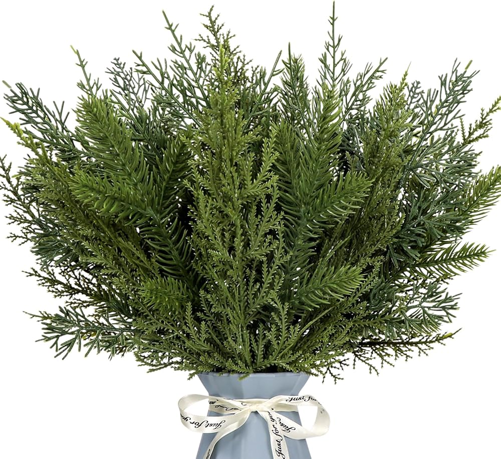 WIDELY APPLICATION: Our fake greenery sprigs perfect for christmas tree filler branches, wreath making supplies, vase filler, DIY crafts, floral arrangements, table centerpieces, new year, holiday,wedding, party and home decorations. Can be used on Christmas wreaths or placed in vases with other flowers. Adds a festive atmosphere and makes an ideal gift.