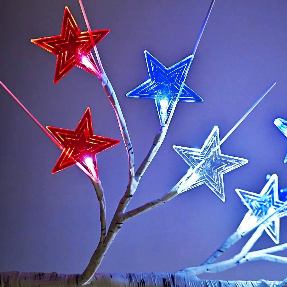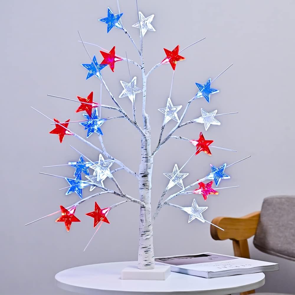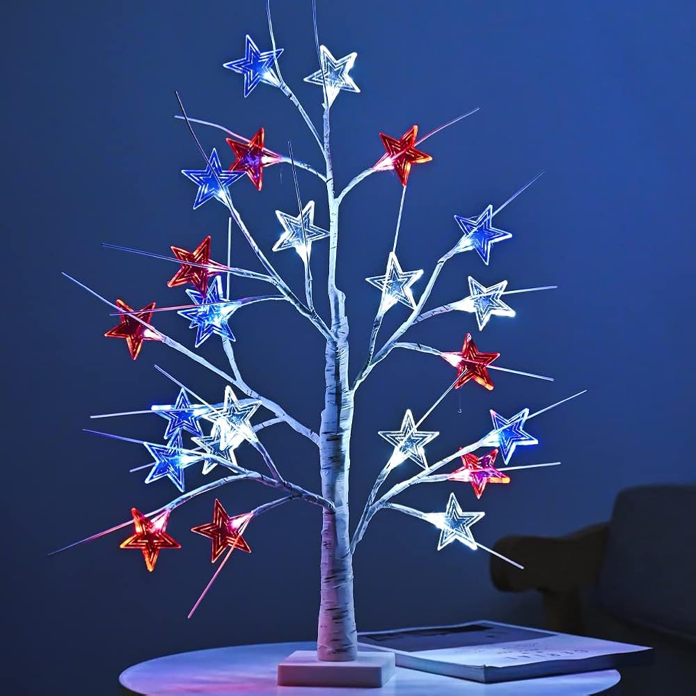 4th of July Decorations, Birch Table lamp Flag Star Tree Lights, 24"Independence Day Table lamp for Home, Bedroom Room Office Decoration, 1Pack, 24 inch
