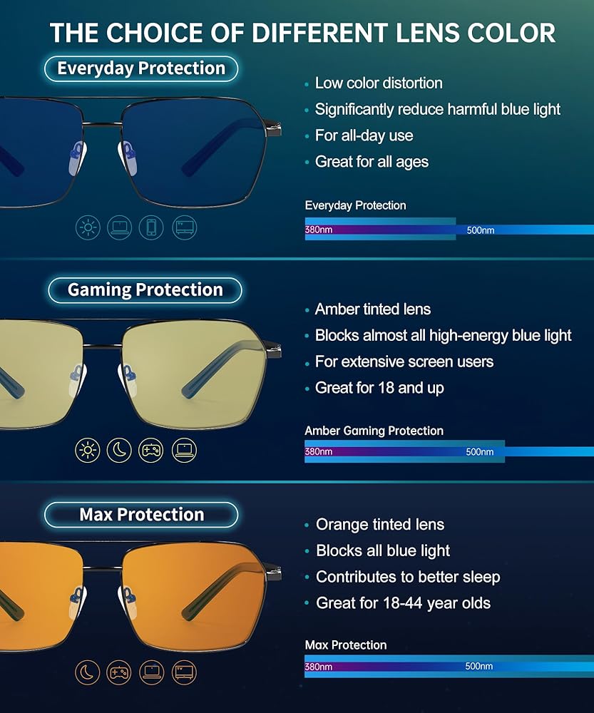 📖Premium Carbon Fiber Material ⏩ This type of blue light reading glasses men feature lightweight carbon fiber material, offer maximum comfort and durability, allowing to wear them for extended periods without any discomfort. Compared with pure metal frames blue ray glasses, carbon fiber blue light filter reading glasses provide better high tensile strength, low weight, high temperature tolerance