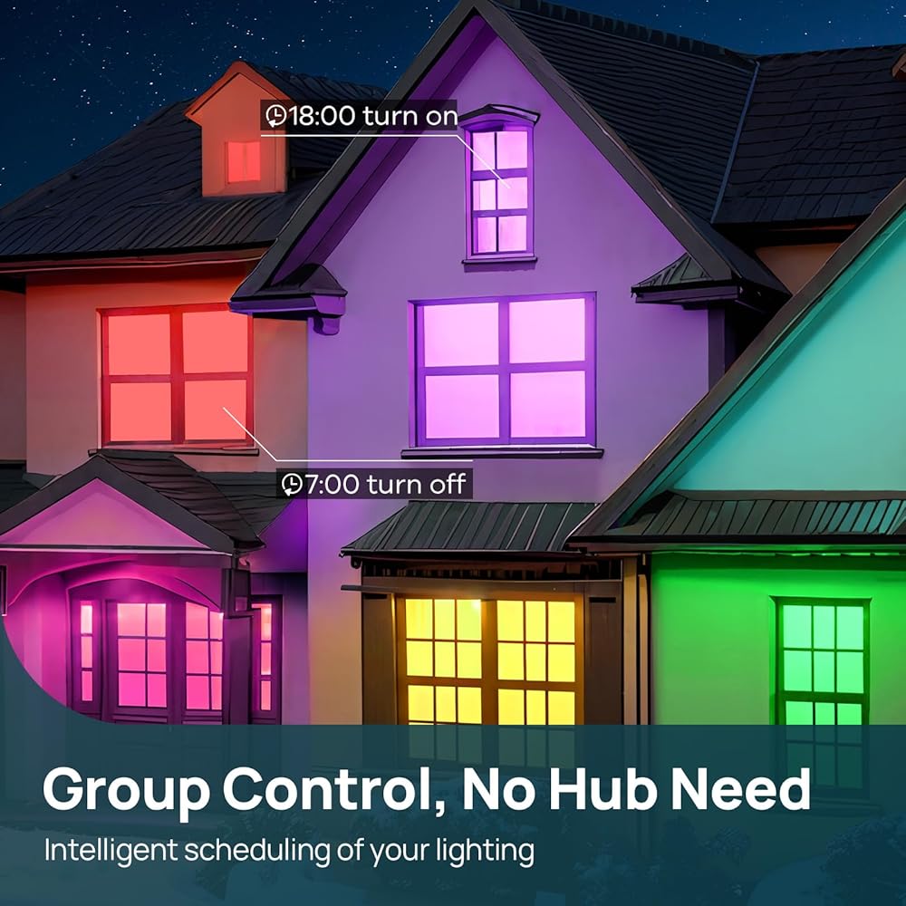 【16 Million Colors & Tunable white】Experience a wider range of vibrant colors with a high Color Rendering Index (CRI). See true colors in every corner of your home. Tune your lights to warm white (1800K) for a relaxing evening or cool white (6500K) for focused work or an energetic morning.