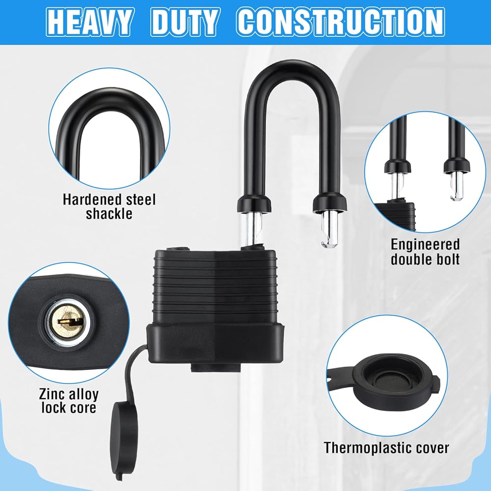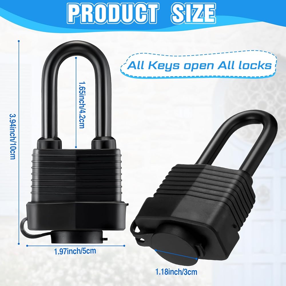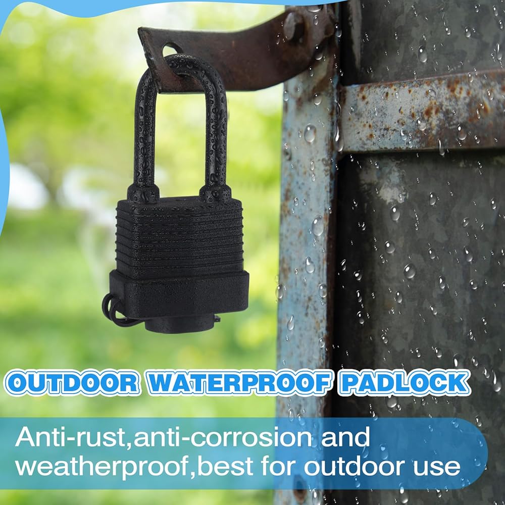 • Waterproof and Sturdy Design: these waterproof padlocks are made of galvanized surface, PVC shell, and a zinc alloy lock core, sturdy, waterproof and weatherproof, withstand tough weather conditions, resist corrosion, making them ideal for outdoor use, rain or shine, last for a long time