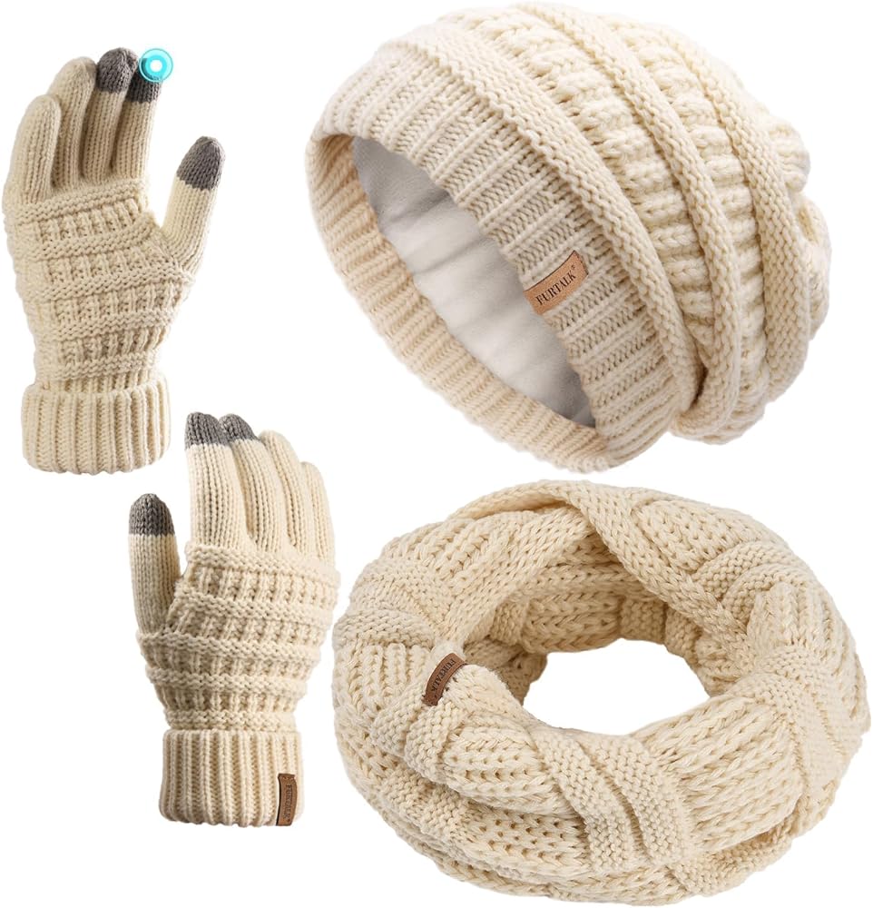Excellent Quality Materials: This winter knit beanie hat scarf gloves set is made of soft and warm acrylic, and the knit is durable and resistant to wear and tear, ensuring long-lasting use