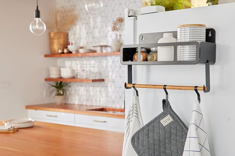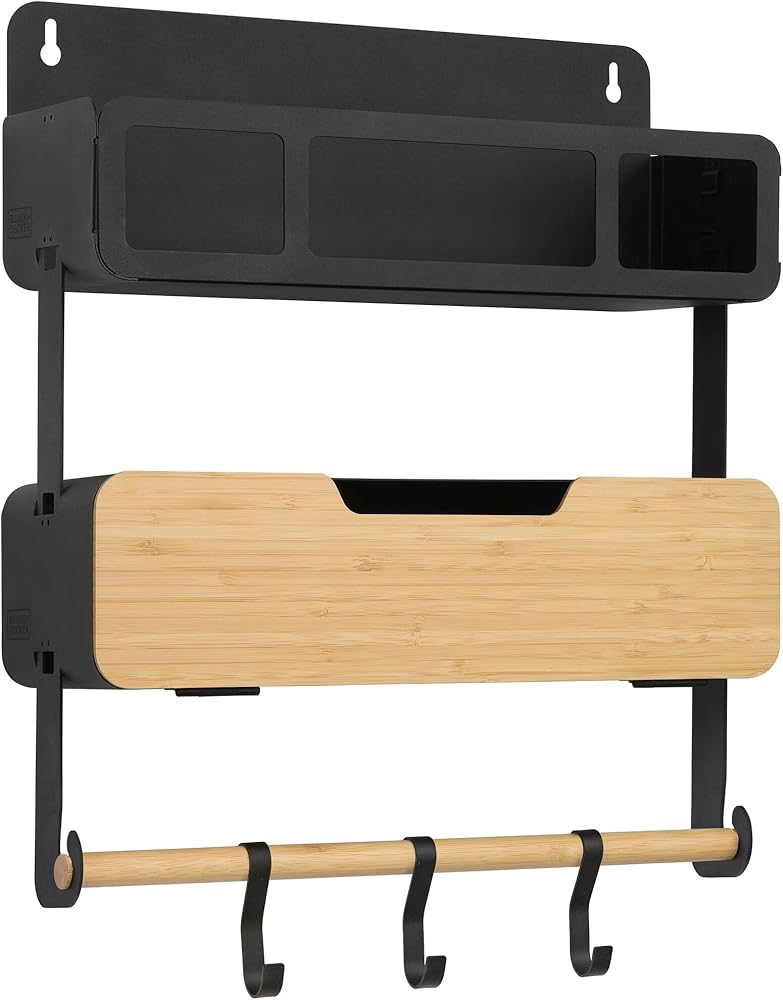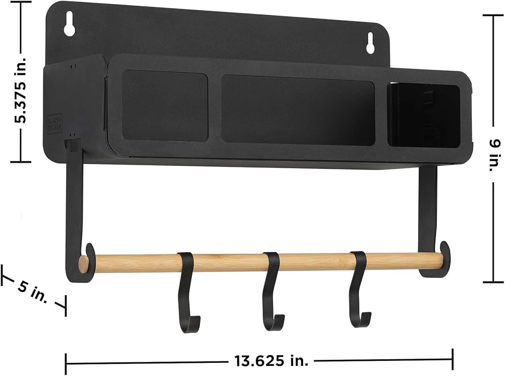 Organize clutter with the new BLACK+DECKER Hanging Storage System. Get the most from your unused wall space or the side of your fridge by customizing your storage system. The BLACK+DECKER Hanging Storage System is designed with interlocking brackets that easily click together for a custom fit that best fits your space and organizational needs. Use one module in small spaces or connect as many as you need to fill a space that needs organization. Each module includes two options for installation: magnetic or wall mounting. Choose between two colors to match your space. Easily organize your most used items in the kitchen, foyer, bathroom, laundry room, craft room, and beyond.