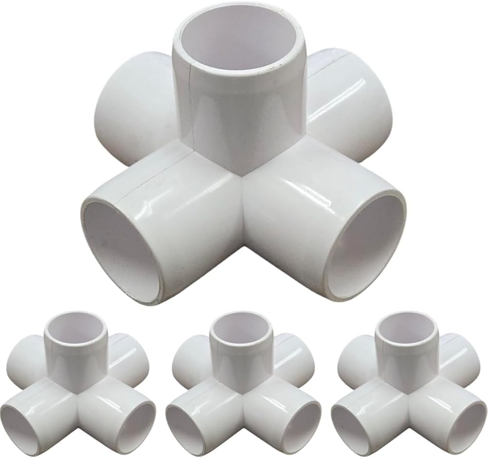 1" 5-Way Cross Furniture Grade PVC Fitting in White, UV-Resistant, Impact-Proof, 1.315" Actual Socket Diameter (Pack of 4) Fits 1" Size PVC Pipe, which has an outside diameter of 1-5/16" (1.315") Glossy white surface finish with tapered sockets for a Professional appearance Injection molded as a single peice from durable and UV-resistant Furniture Grade PVC. Will not crack, change color or degrade over time like other sub-par PVC fittings.