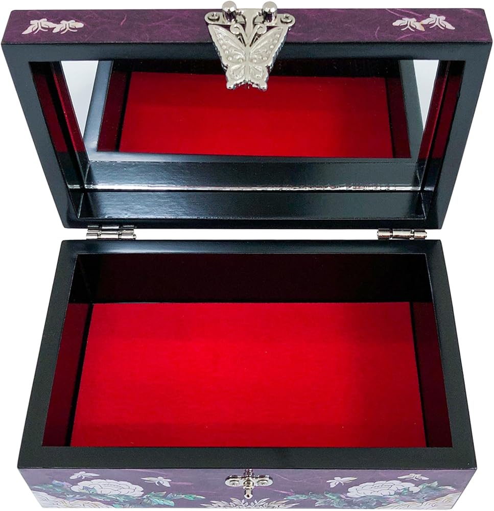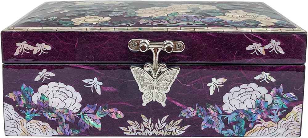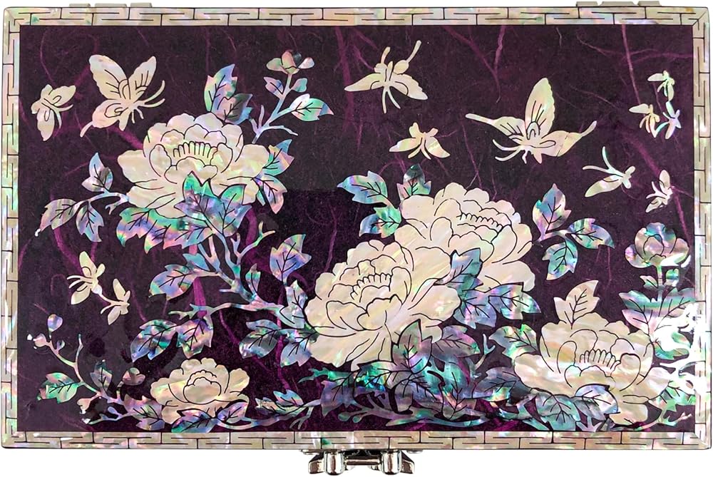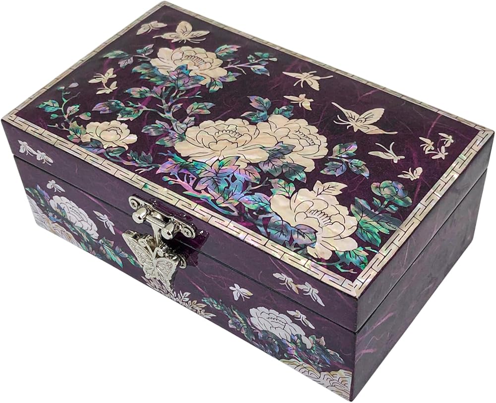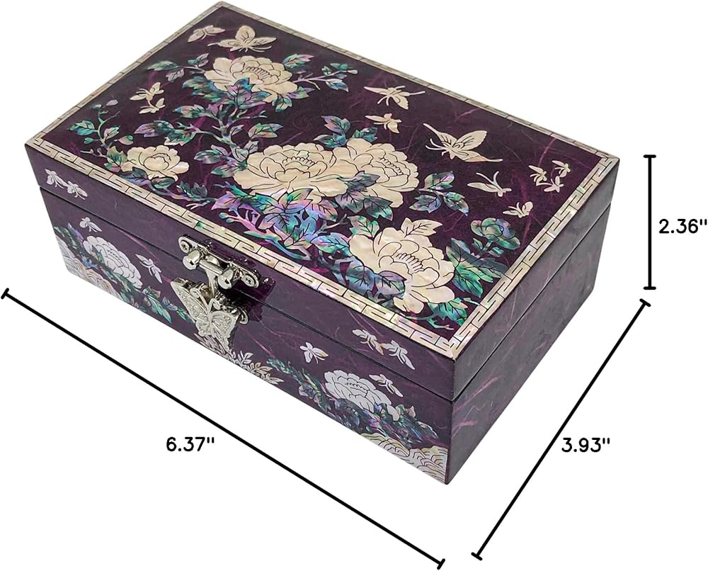 Glamorous design : Jewelry box featuring a glamorous design accentuated by glossy, Peony Hanji mother-of-pearl, adding a touch of sophistication to its aesthetic