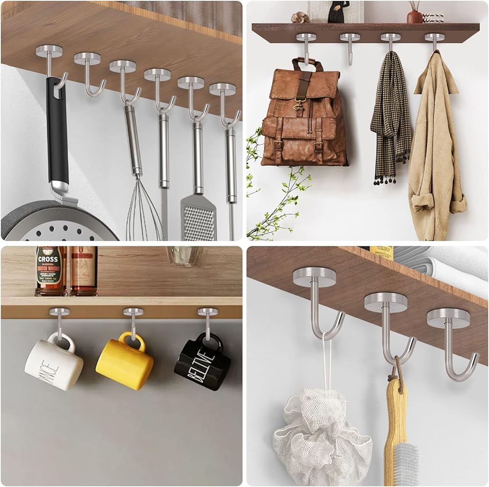 WIDELY APPLICATION- The multifunctional coat hook is a good helper for organizing, making your life more organized and convenient. This hook is suitable for hanging towels in the bathroom, hanging kitchen utensils, organizing tools in the garage, and also hanging clothes, hats and more in the bedroom