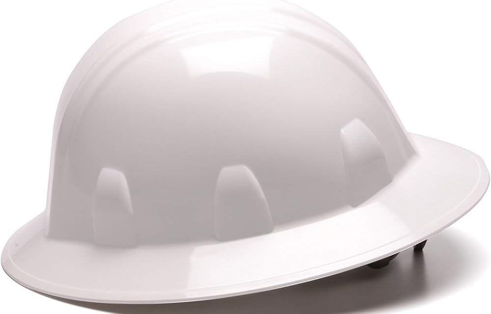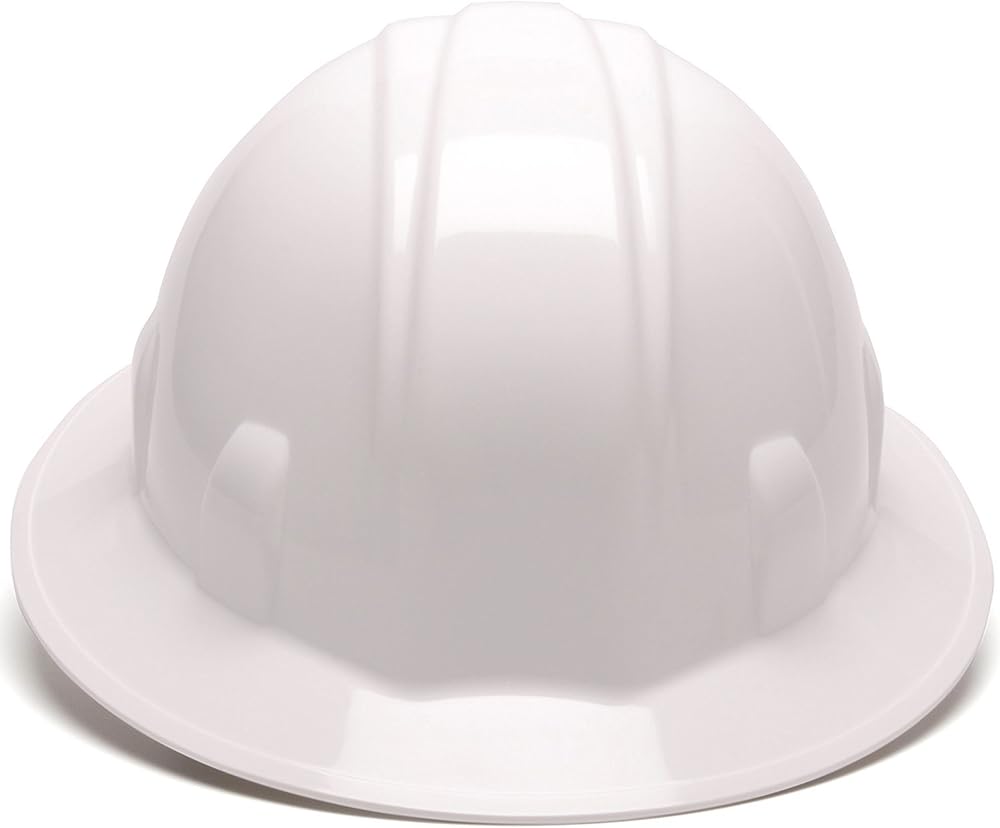 Pyramex HP24110 Specifications: Meets ANSI Z89.1-2003 Standards, Type I, Class C, G, and E CSA Z94.1-05Pyramex HP24110 Includes: (1) Full Brim Hard Hat 4 Point Ratchet Suspension - WhitePyramex HP24110 Features: Shell constructed from High Density Polyethylene materials Low Profile design Rain trough on sides and back of helmet channel moisture away. Universal accessory slots fit cap mounted ear muffs and chin straps. Ratchet suspension is easy to adjust and allows the wearer to modify the fit while wearing hard hats. Soft brow pad is replaceable and washable