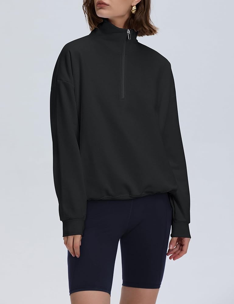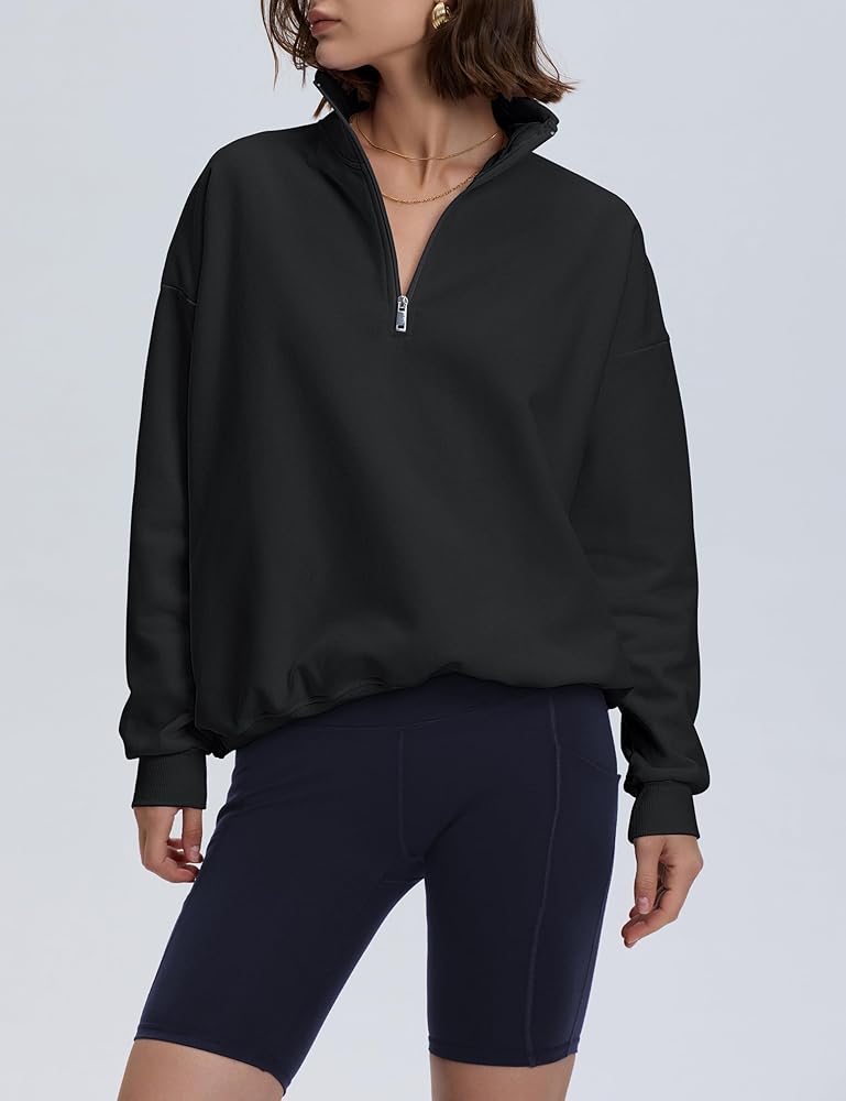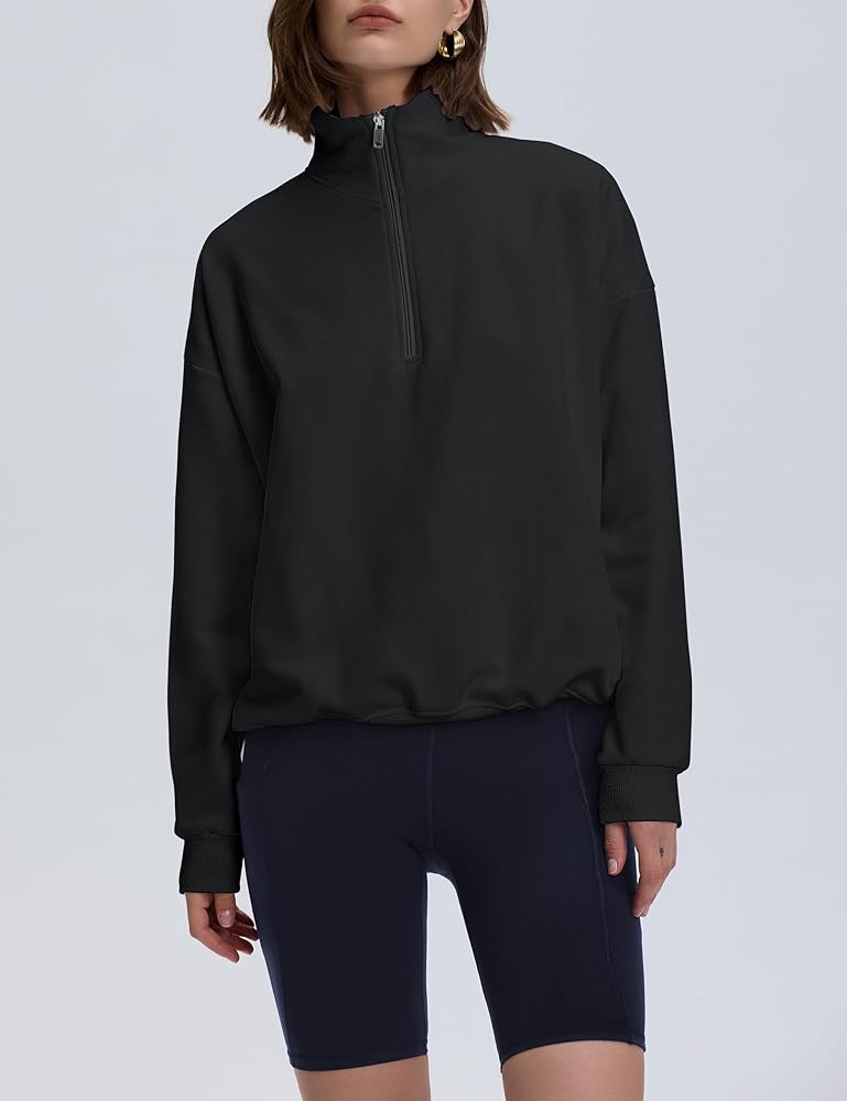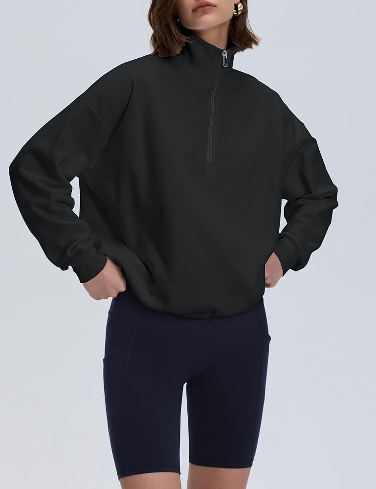 Pullover Sweatshirts for Women: Crafted from a premium cotton-blend fabric, soft and light fleece that feels like a cloud; This lightweight quarter zip pullover provides exceptional softness and comfort, wear-everywhere style, making it ideal for everyday wear and travel in fall and winter.