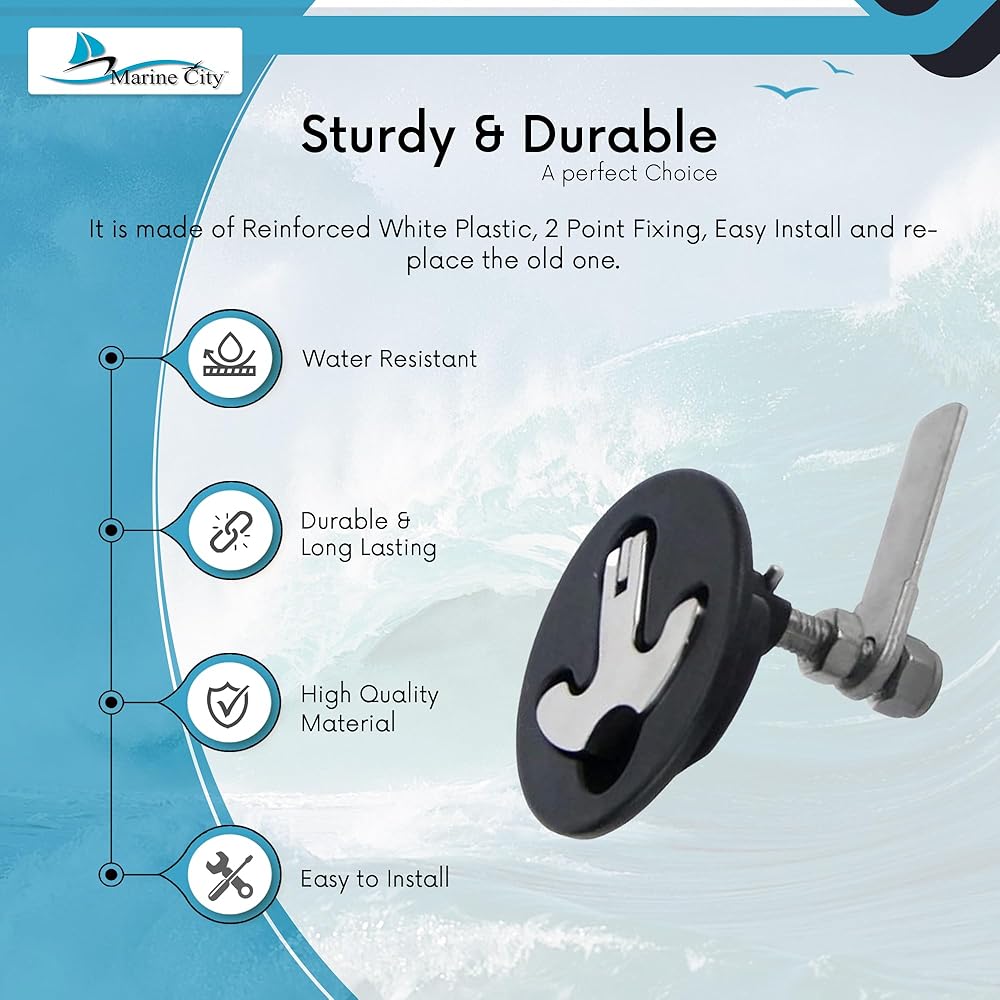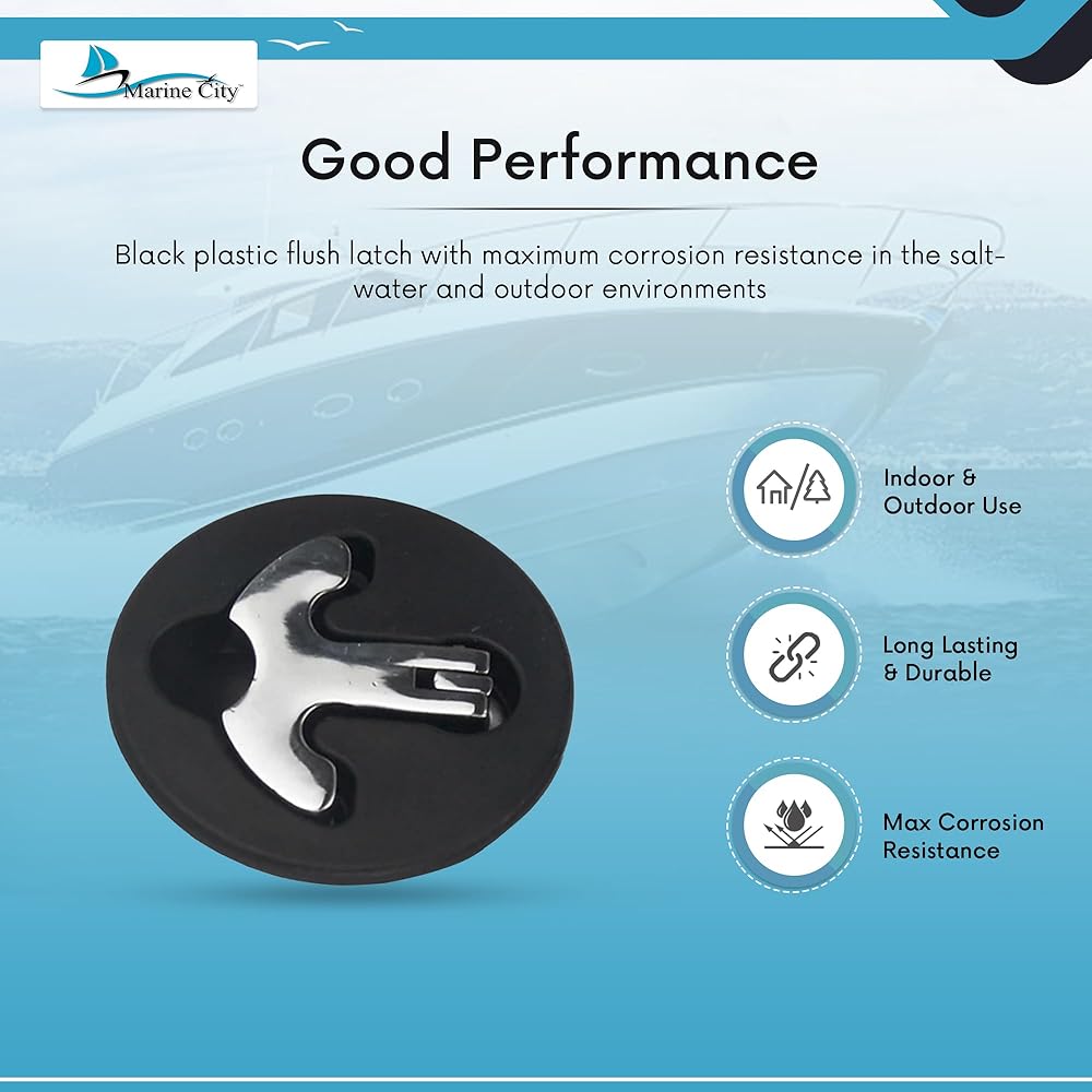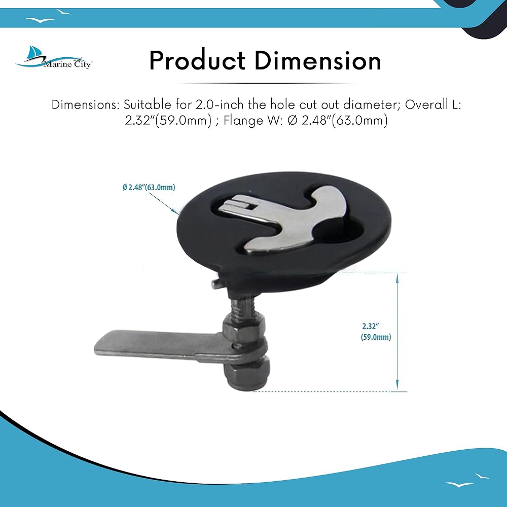 Flush rattle-free hatch dog secures cockpit hatches, lockers, doors and more. The flush design allows the rattle-free handle to fold out of the way safe from becoming a trip hazard.
