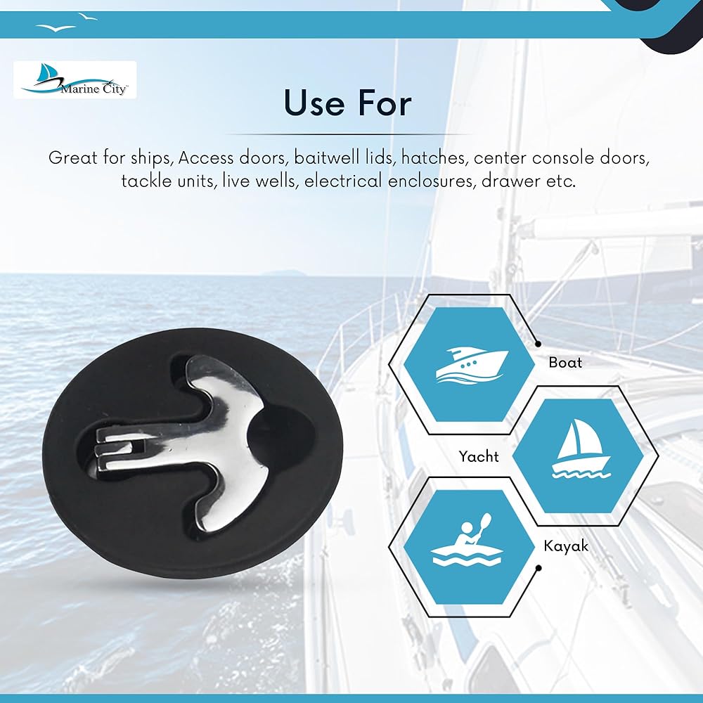 Best for ships, Access doors, bait well lids, hatches, center console doors, tackle units, live wells, electrical enclosures, drawer etc.