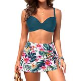 Bikini with Skirt: The high waist swim skirt includes built-in shorts and a split drawstring, providing full coverage and gentle tummy control for added confidence.
