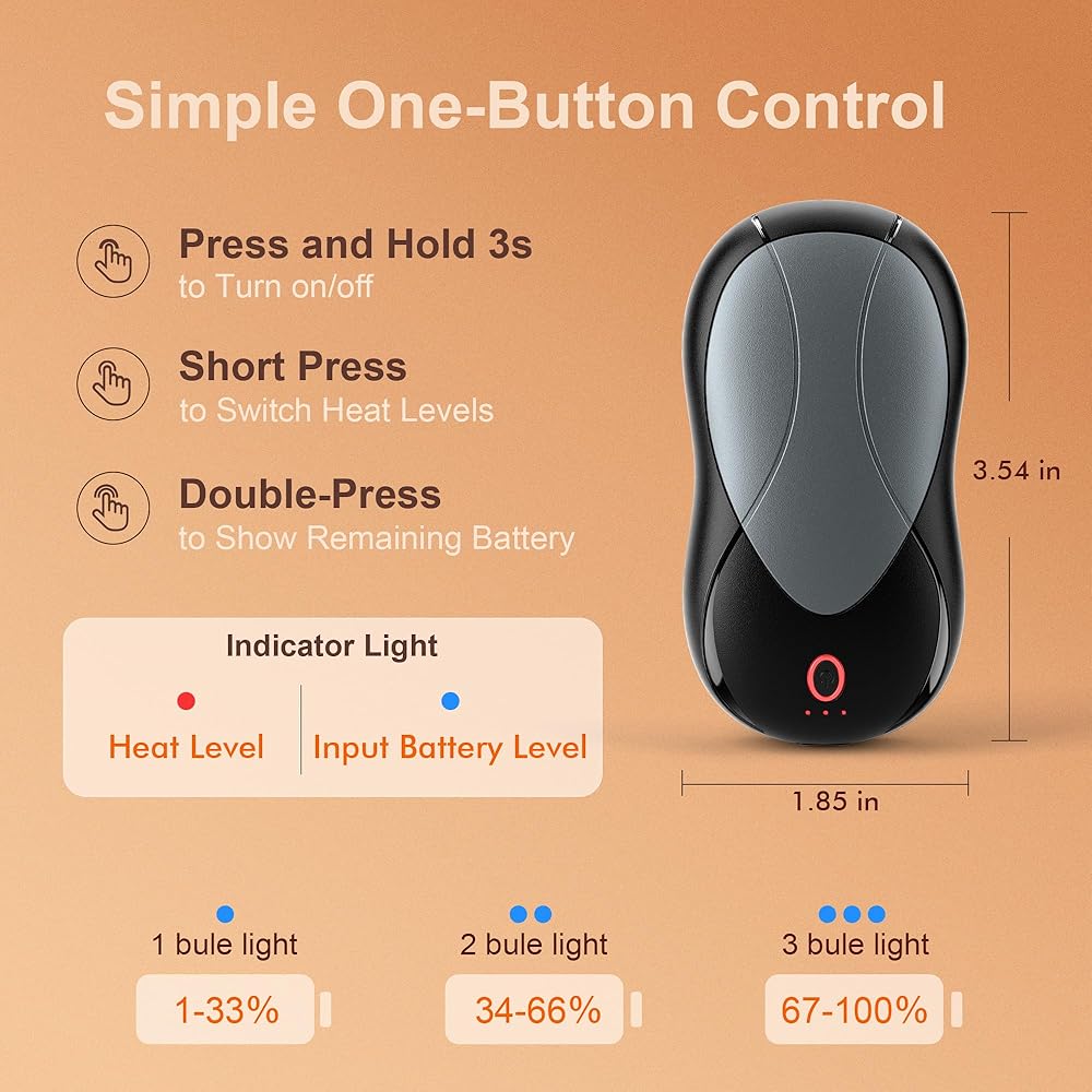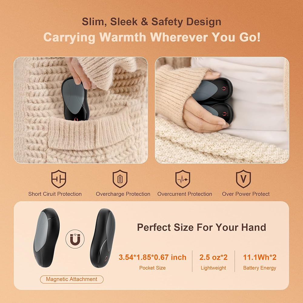 Warm and Caring Gift: This winter, touch their hearts with the gift of warmth—these electric hand warmers rechargeable that not only warm their palm but also serves as a tender feel of your care each time they use reusable hand warmers. It's also a great choice for surprising your parents or older folks with a gift.