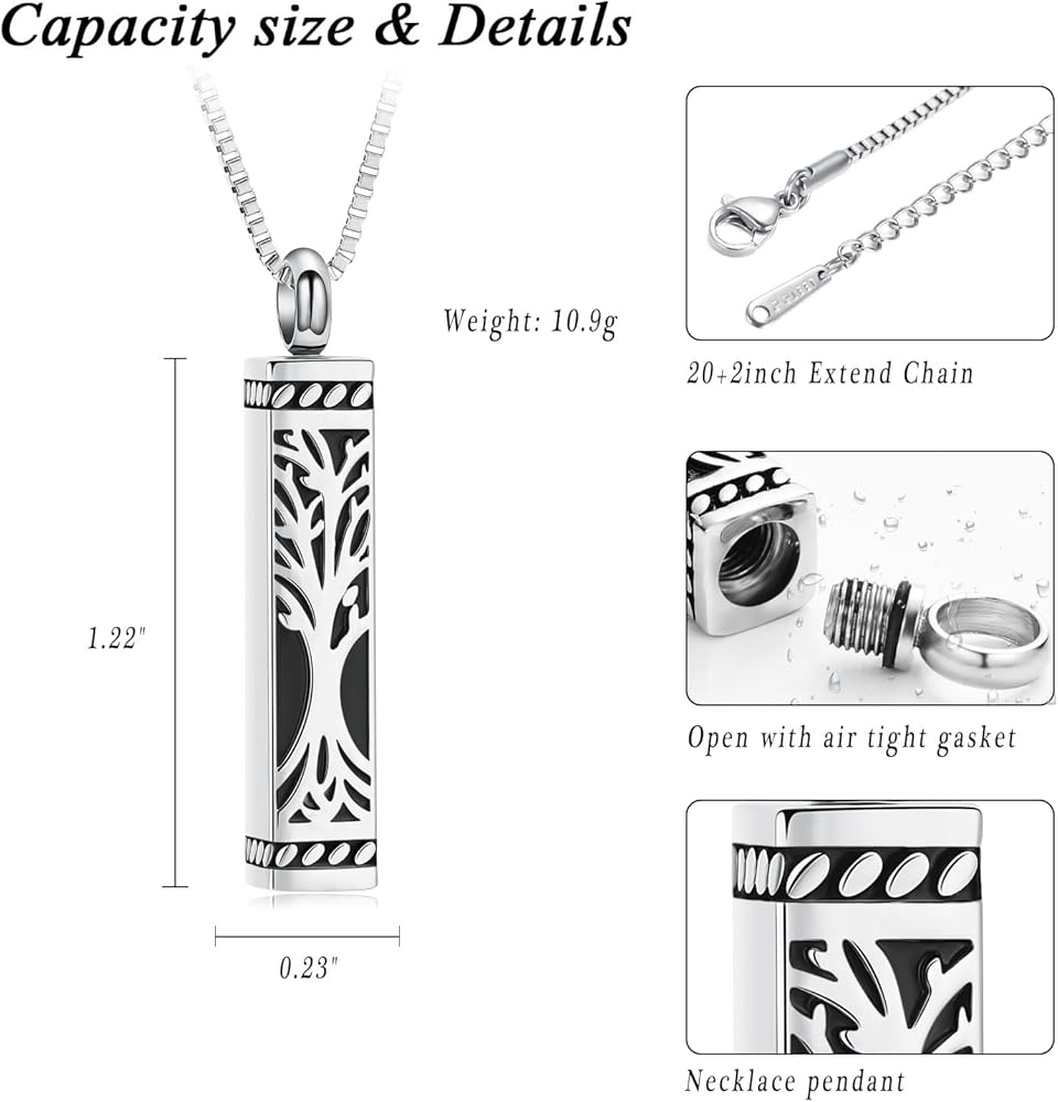 ③【Ashes Pendant Size & Material】Pendant size: 1.22*0.23 inch. 20"chain with 2" extension(adjustable). Made of high quality stainless steel,waterproof,anti-rust and durable,never fade. Package: A urn necklace and a chain with a gift box, an instruction manual and a set of fillers.