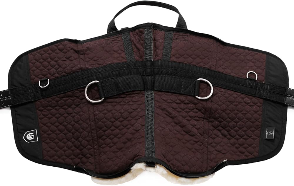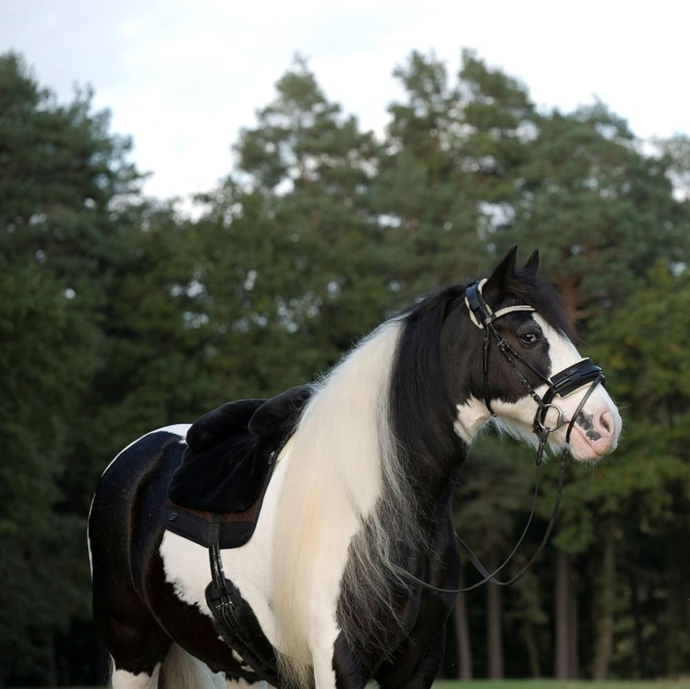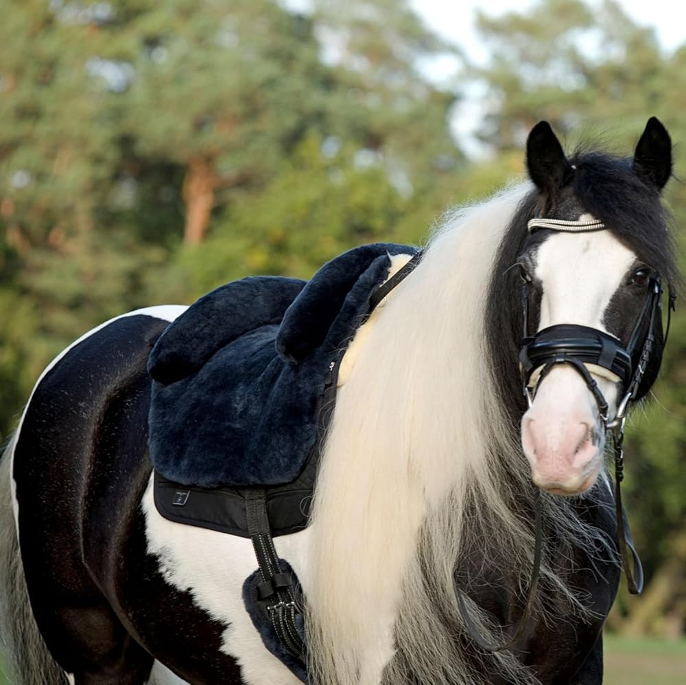 COLOURS AND DIMENSIONS: Our lambskin saddle is available in anthracite-, brown- and natural-coloured sheepskin in the sizes Warmblood, Pony & Shetty. Measures (approx.): Warmblood: Length of back 66 cm/ 25,9 in, length fender: 50 cm/ 16,9 in, Pony: Length of back: 59 cm/ 22 in, length fender: 44 cm / 17 in, Shetty: Length of back 51 cm/ 25,9 in, length fender: 43 cm/ 16,9 inches. The saddle is made out of genuine sheepskin (30 mm/ 1,2 inches thick; for size Shetty 20 mm/ 0,8 inches thick).