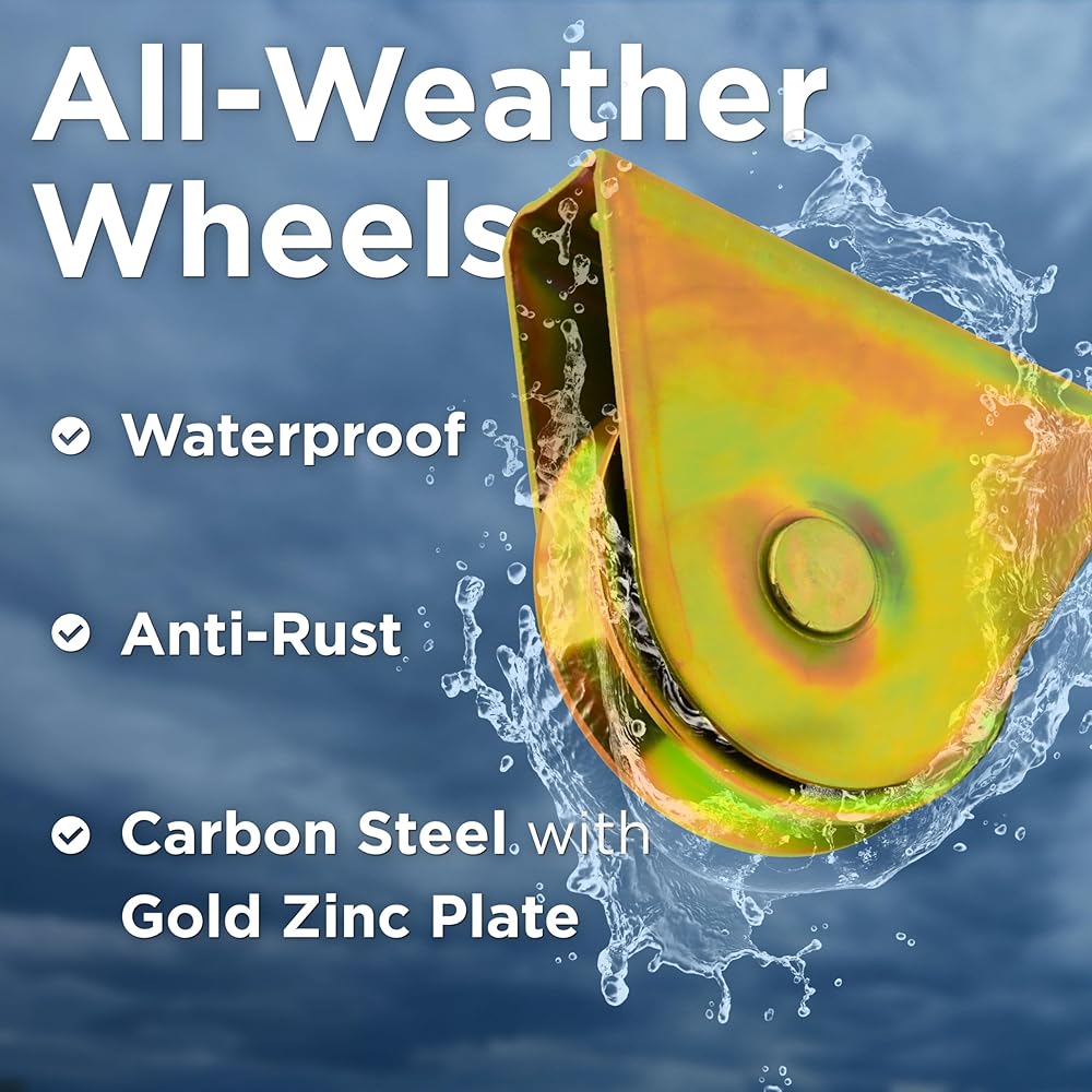 If you have a rack or chain driven slide style gate, try ALEKO's galvanized steel V track for a long lasting set of track. Each set of ALEKO's V track comes with 12 feet in two 6 foot sections, the 2 1/4 inch wide steel V should fit any V groove style of wheels. Our track is made from 12 gauge galvanized steel with a 90 degree angle, and the rounded top reduces noise and friction when vehicles pass over it. The low key design won't draw attention to itself, as good gate track should. 12 feet is enough for many gates, but if you have a longer gate and need more track, ALEKO also sells 18 feet length of V track, or you could buy two sets for a total of 24 feet. Each set includes (2) 6 foot sections of track and anchor mounting bolts.