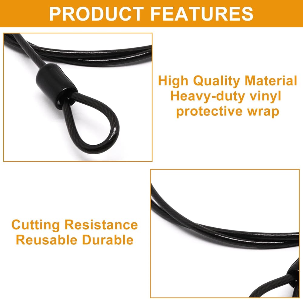 Secure and Strong: Our steel cable with loops are designed with double loops ends, suitable for all padlocks, u-locks, or disc locks, biye locks, motorcycle helmet lock, backpack straps and so on