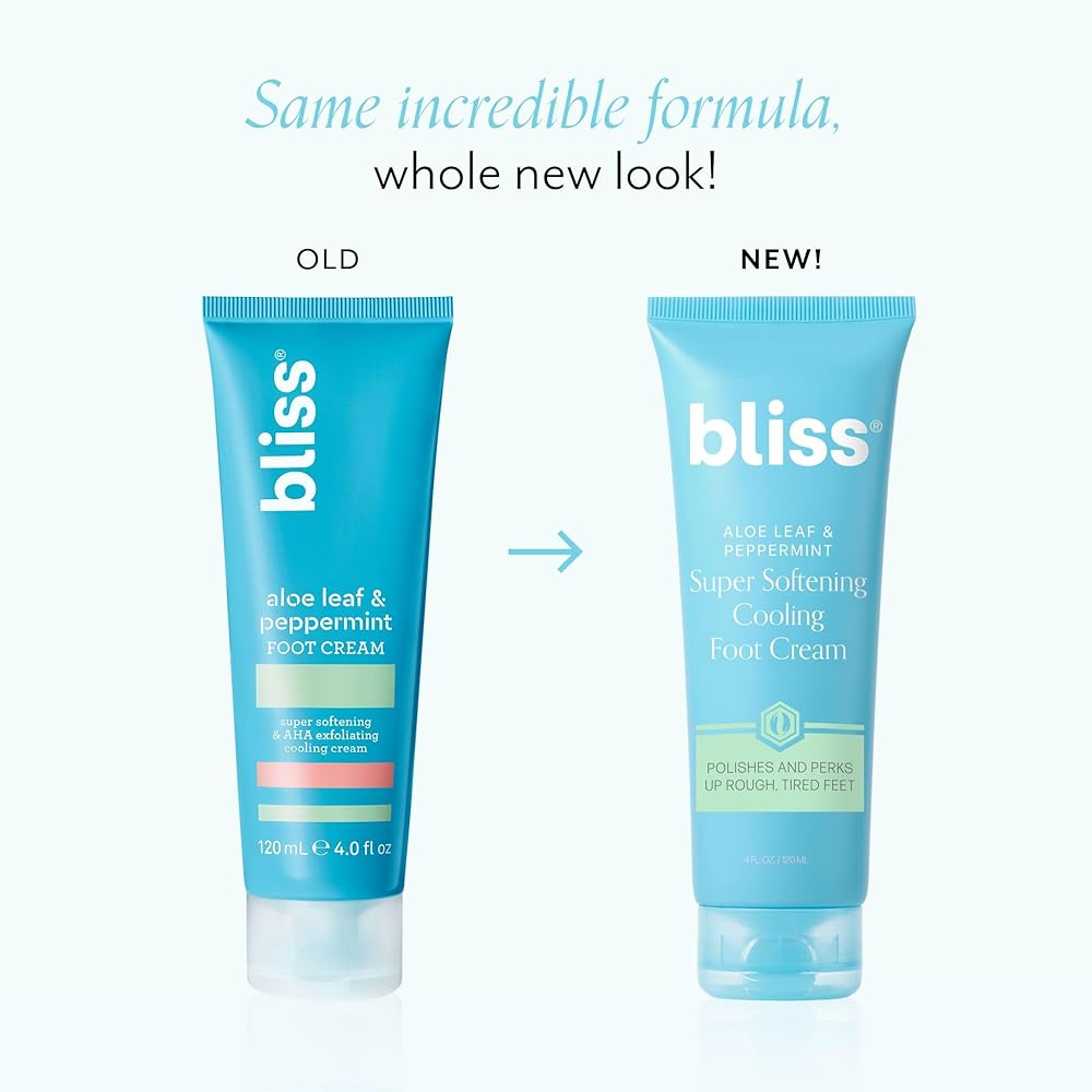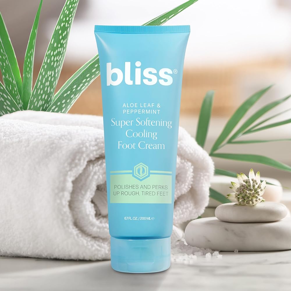 ALOE LEAF & PEPPERMINT: Bliss' refreshing aloe and peppermint foot cream helps feet feel moisturized and smooth, while the stimulating eucalyptus scent feels soothing.