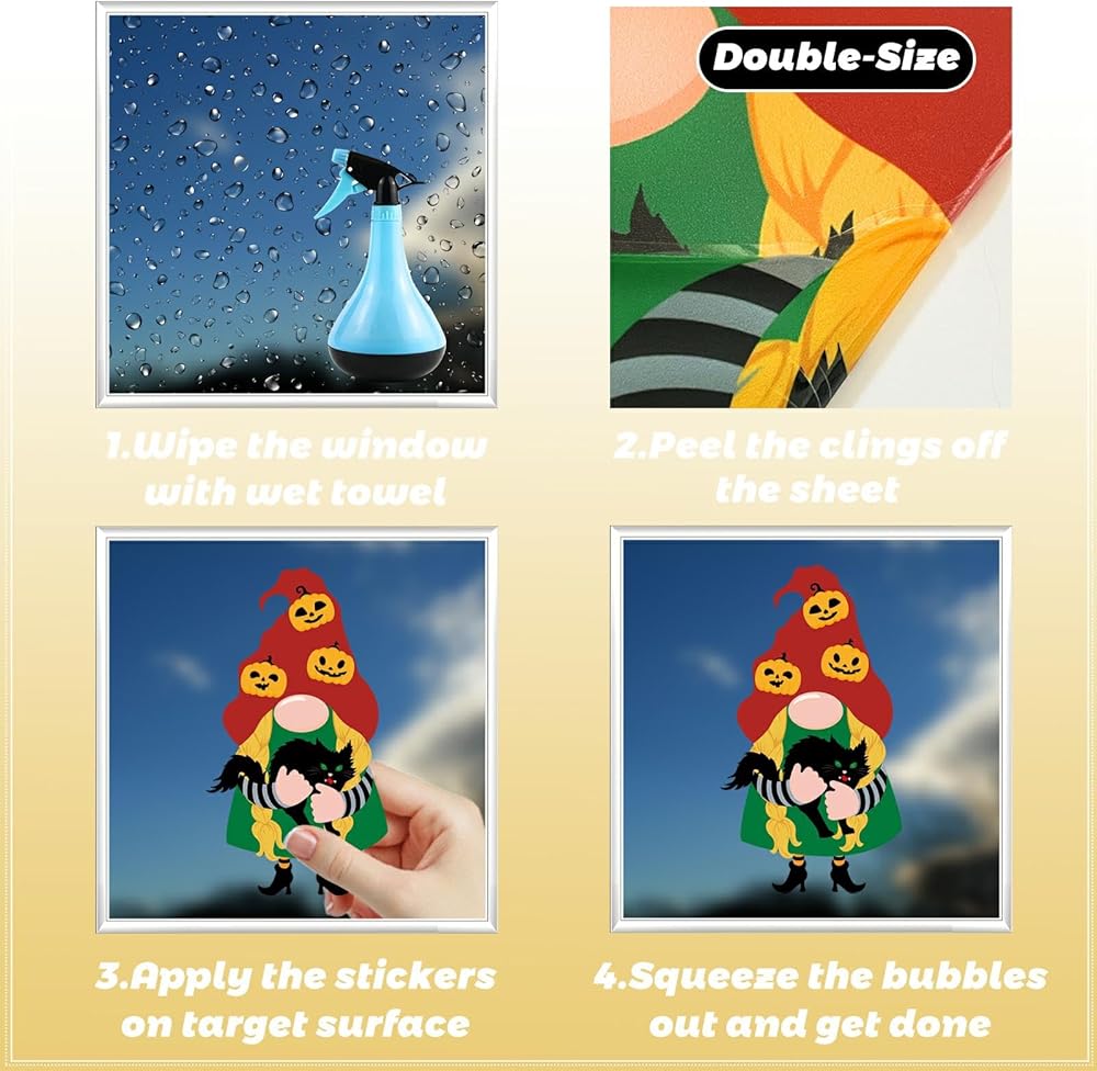 No Adhesive Residue: Halloween window static cling decals adhere to windows without the need for sticky adhesives, so you won't have to worry about leftover residue when removing them