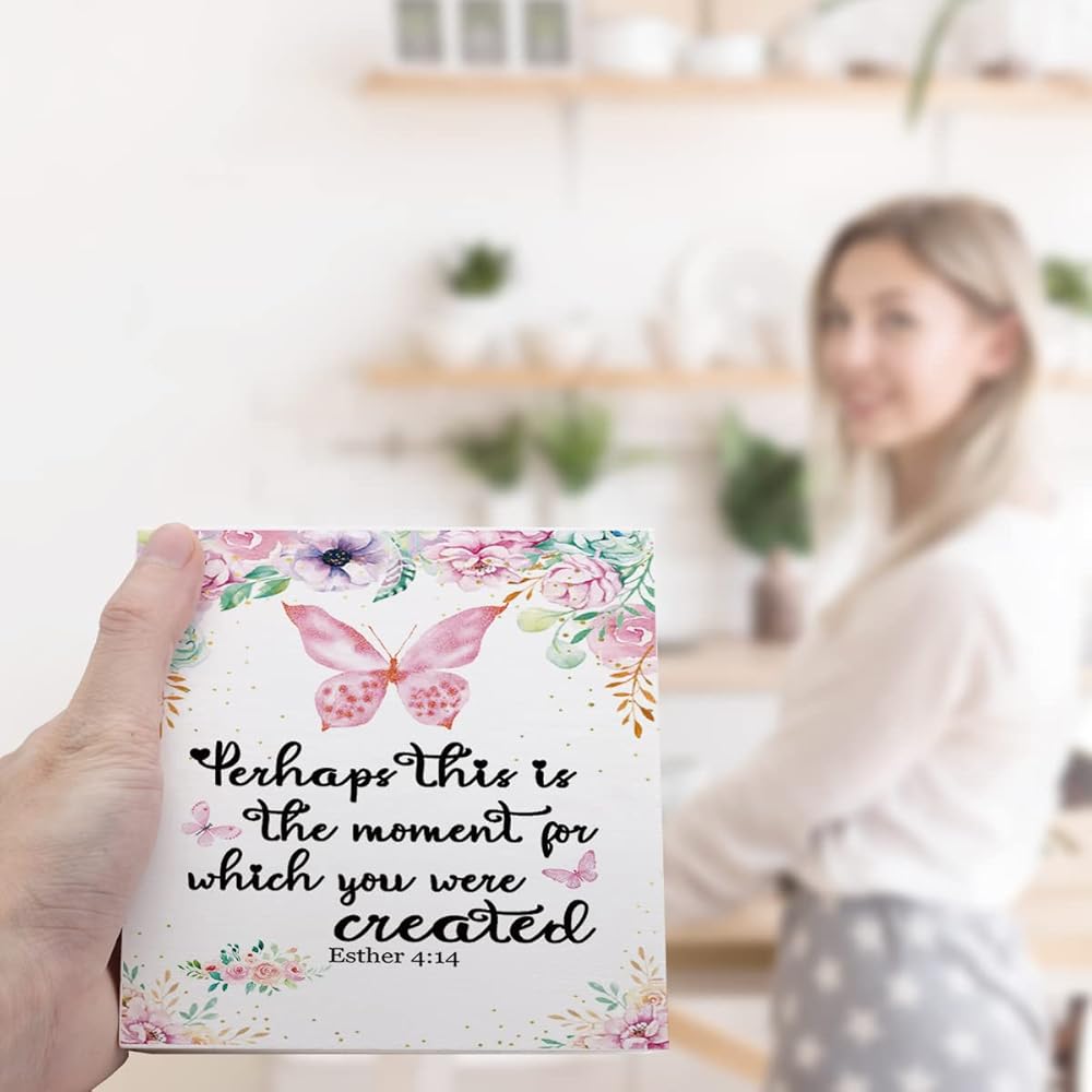 Esther 4:14 Perhaps This is The Moment for Which You Were Created Wooden Sign Desk Decor,Bible Verse Wood Block Sign Desk Decorations for Christian Home Bedroom Girls Room Office Shelf Table Decor