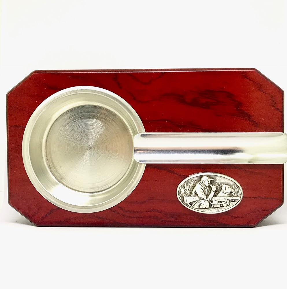 Every cigar smoker will enjoy the single holder cigar ashtray for a place to rest their favorite cigar during a smoke or when finished. The ashtray is made with a solid stainless steel tray for capturing ashes inlaid into a wood grain rosewood base with a highly polished chrome plated cigar rest. The bottom is covered with a felt padding to protect any furniture where the ashtray is sitting. Not only is it highly functional but it looks good and will provide aesthetic enjoyment to the avid cigar smoker. No two ashtrays are alike due to the nature of the wood grain so essentially each ashtray is unique. The ashtray can be used in a covered indoor or outdoor area and wiped clean with a damp cloth.