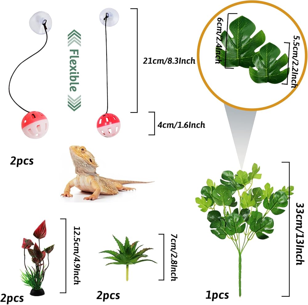 Bearded Dragon Accessories, PietyPet Reptile Plants, Terrarium Hanging Plant Vines, Bearded Dragon Toys Ball bells, Leopard Gecko Tank Accessories for Bearded Dragon Lizard Snake Geckos Chameleon