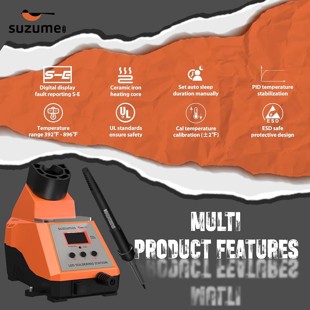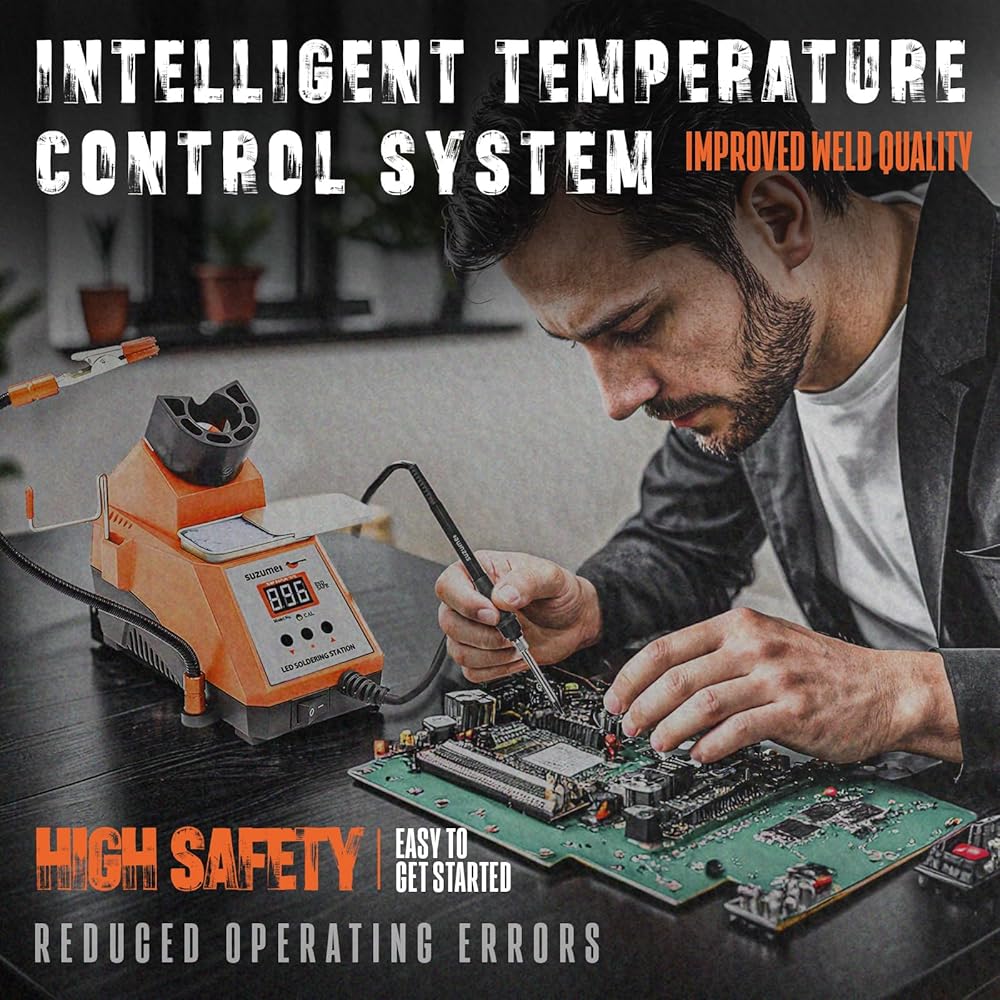【𝐀𝐮𝐭𝐨 𝐒𝐥𝐞𝐞𝐩, 𝐄𝐟𝐟𝐢𝐜𝐢𝐞𝐧𝐭 𝐖𝐞𝐥𝐝𝐢𝐧𝐠】:Energy-saving and efficient, this soldering station boasts an intelligent auto sleep mode that minimizes standby loss, extending product lifespan. With rapid heat recovery, it's always ready to deliver seamless welding, empowering your creative and repair projects with ease.