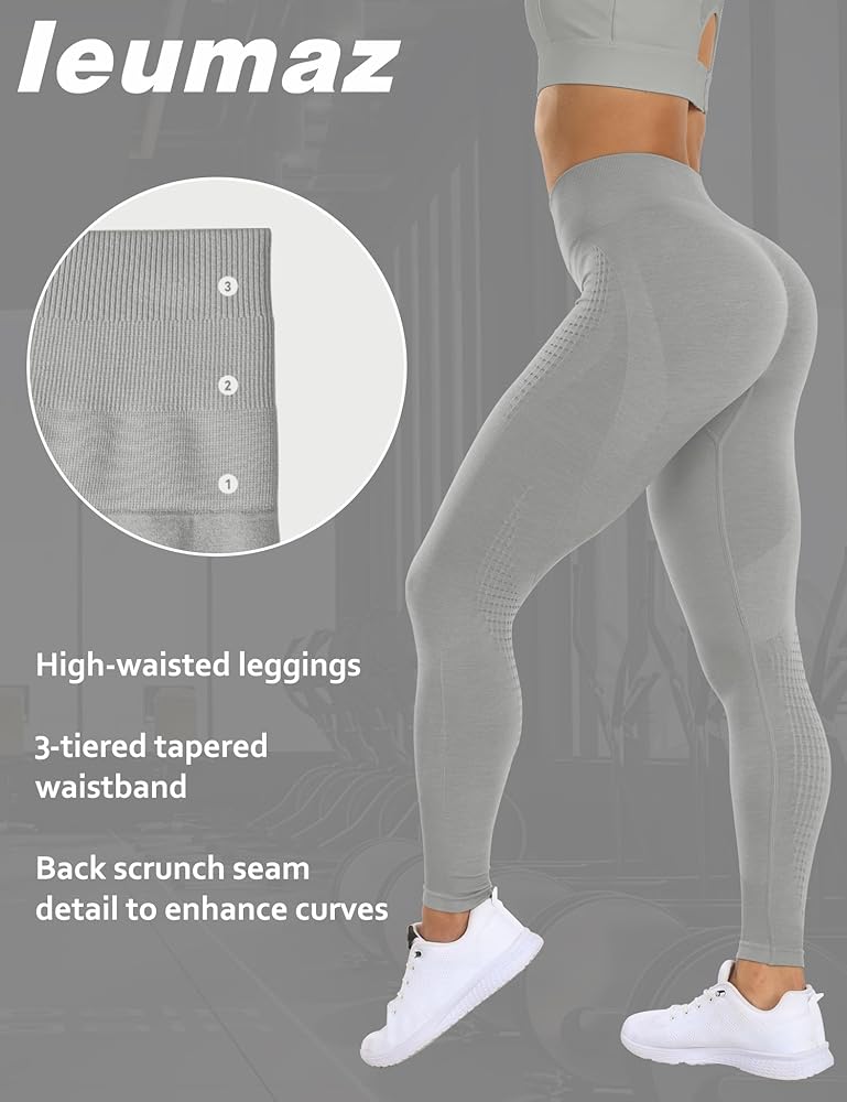 • Premium seamless knit fabric: Experience luxurious comfort with seamless leggings made from advanced knit fabric that feels like a second skin. The seamless design cuts irritation and boosts flexibility, for yoga, workouts, or daily wear