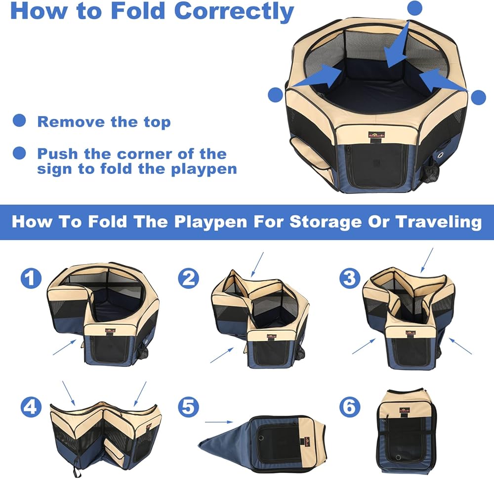 Cleanable Material: High quality puppy playpen made from durable Premium 600D Oxford Cloth which makes no terrible smell, waterproof and scratch resistant. The puppy play pens are easy to clean, as well washable material playpen to ensure that your pets will be sleep and play in a clean environment.