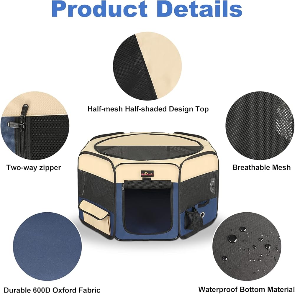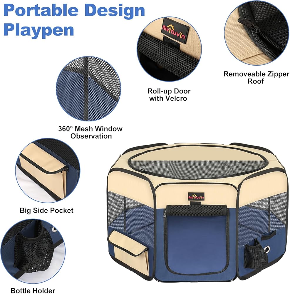 Aivituvin Dog Playpen, Foldable Pet Play Pens with Carrying Bag for Cat, Puppies, Rabbits, Portable Dog Tent Crates Cage for Travel Camping Indoor Outdoor, Removable Shade Cover, Blue S