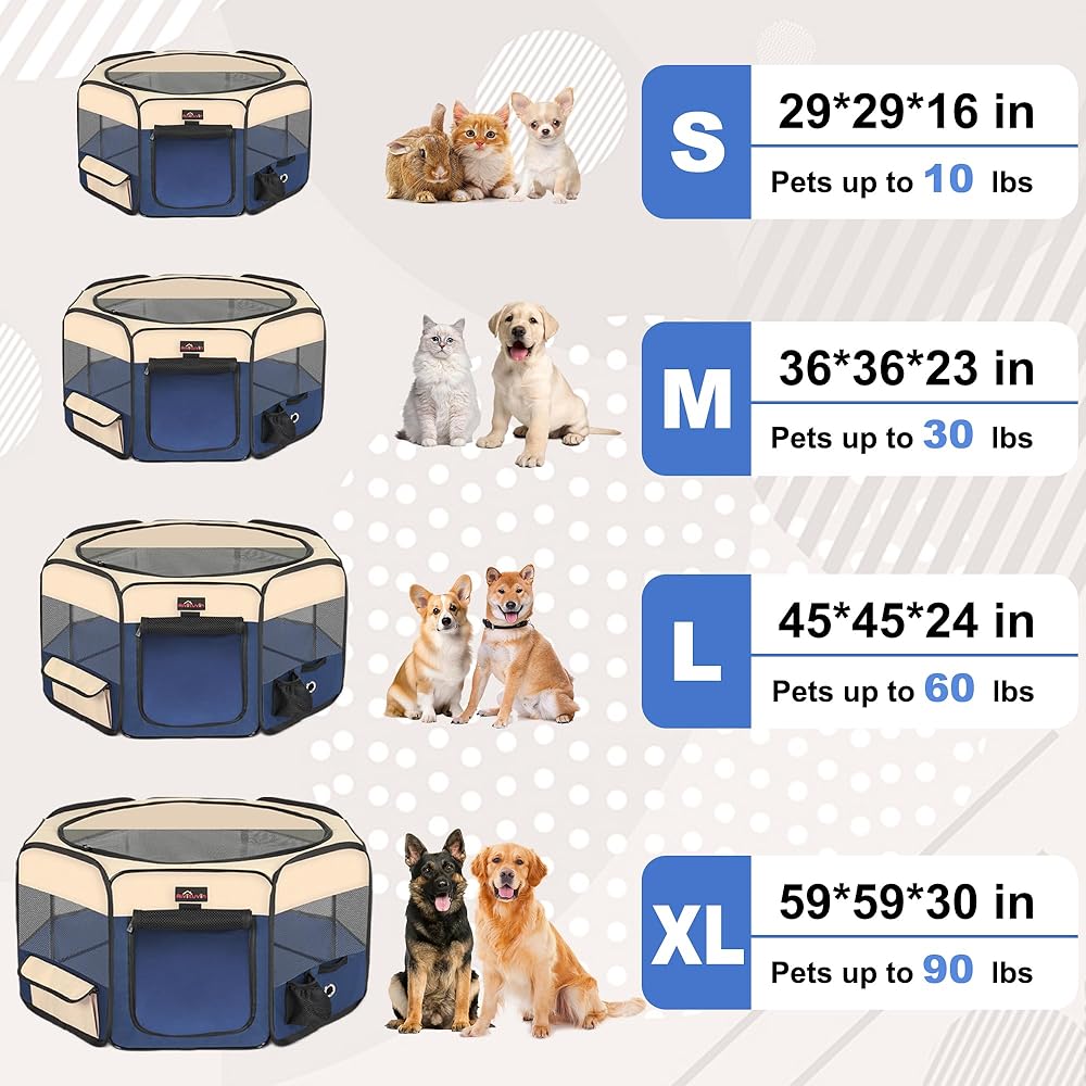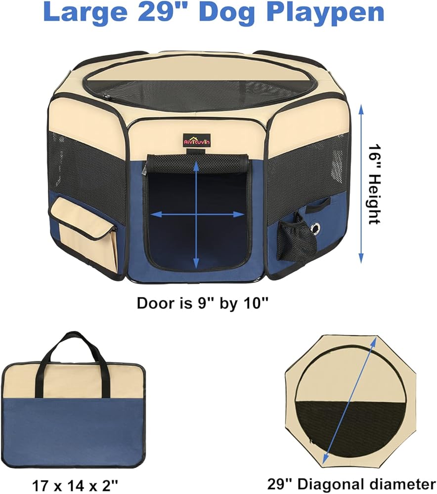 Dimensions - Pet Playpen Size: 29”(Diameter) x 16" (Height). Proper size playpen provides a spacious interior for puppys to play and rest, so Please Measure Your Pets befor placing a new order to make sure get right pet tents.