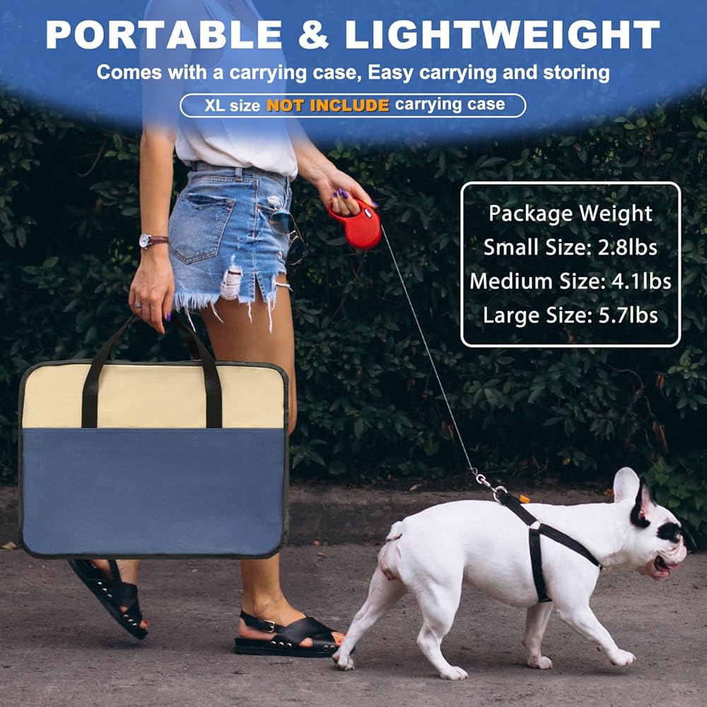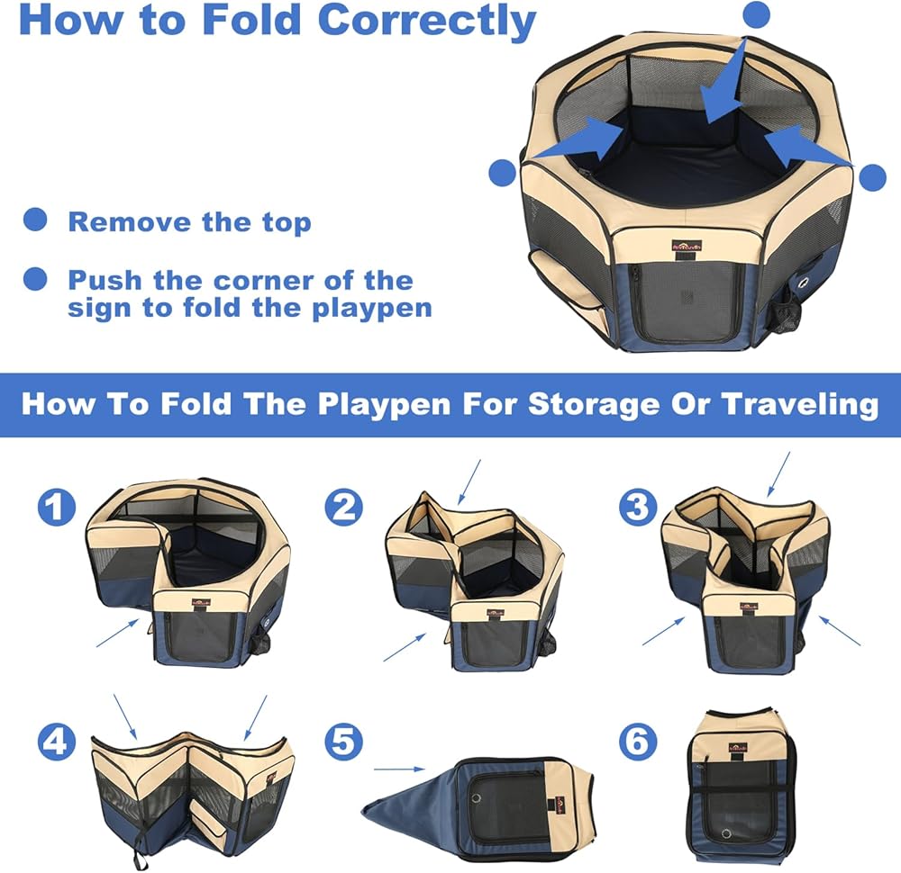 Portable and Lightweight: The pet playpen can quickly open to use from folded storage bag and fold back flat when not in use in seconds, no assembly required. Portable and lightweight design makes the play pen suitable use for outdoors, indoors, traveling, camping, etc.