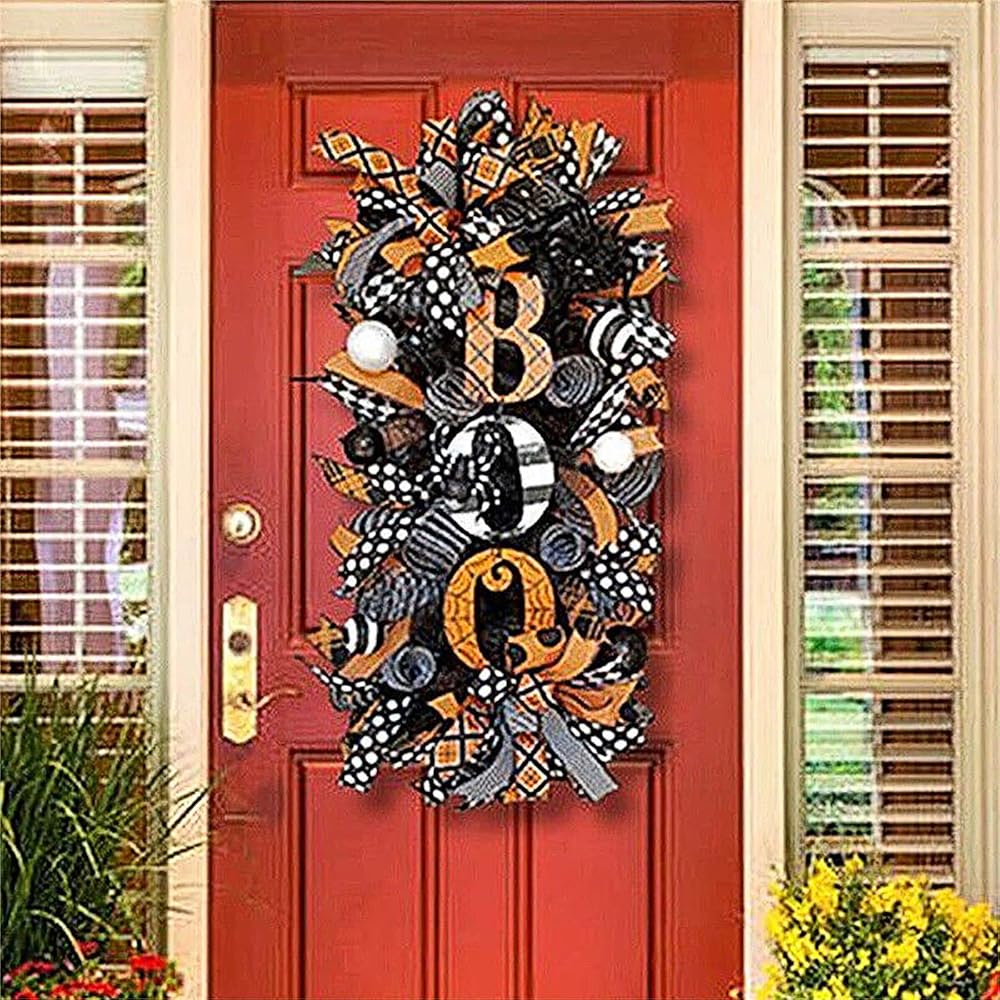 5. Versatile Use: The Halloween door wreath can be hung on the front door, back door, mantelpiece, gallery wall, entrance, cafe, restaurant, office, commercial place, etc.