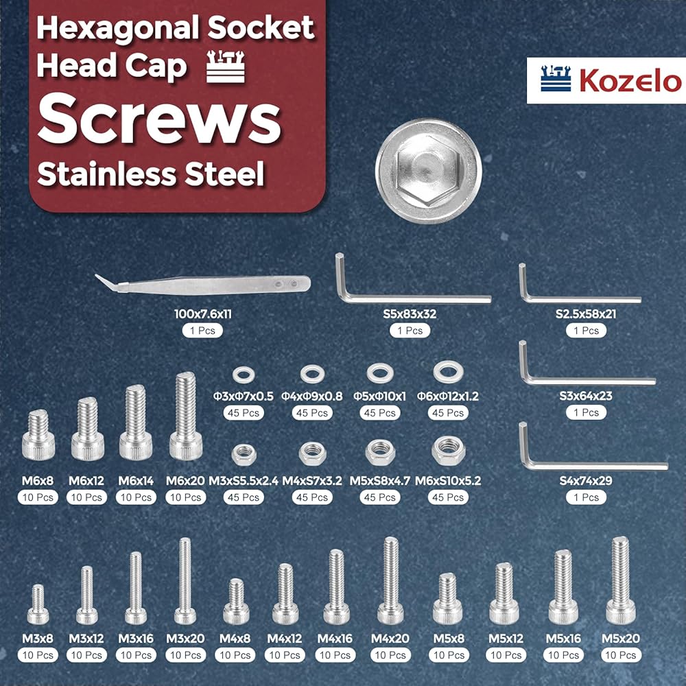 1- PACKAGE CONTENTS - 520 packs of hex socket head cap bolts screw kit; Thread size: M3/M4/M5/M6; Please refer to the pictures for specific products and sizes; The quantity and size are enough to meet your needs on different occasions.