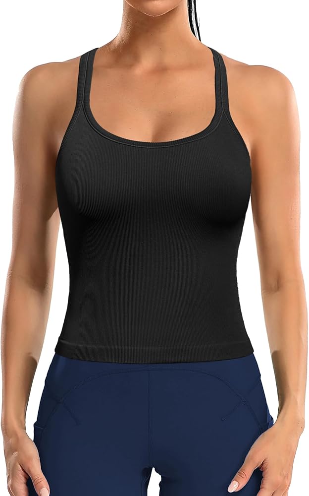 Built-in Removable Bra: Women athletic tank comes with built in bra and removable pads for extra support, keeping you supported and secure during the workout