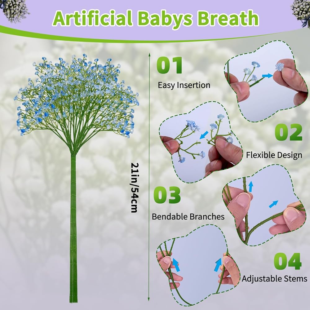 Maintenance Free: These babys breath artificial flowers are soft and lifelike and require no maintenance or watering. Even after the test of time and weather, they remain fresh and vivid and beautiful. Especially for those with flower allergies, our faux baby breath flowers are ideal choice