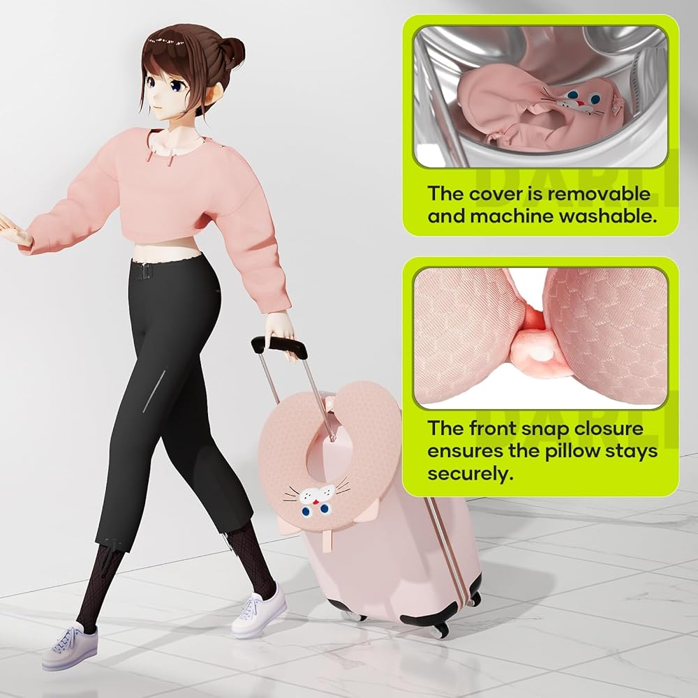 Filled with premium quality slow-rebound memory foam, our kids traveling pillow can provide better support to the neck and chin of kids and prevent head from falling forward. This super soft neck pillow for kids can make your little one feel more comfortable during journey, whether it's road trips, airplane trips.