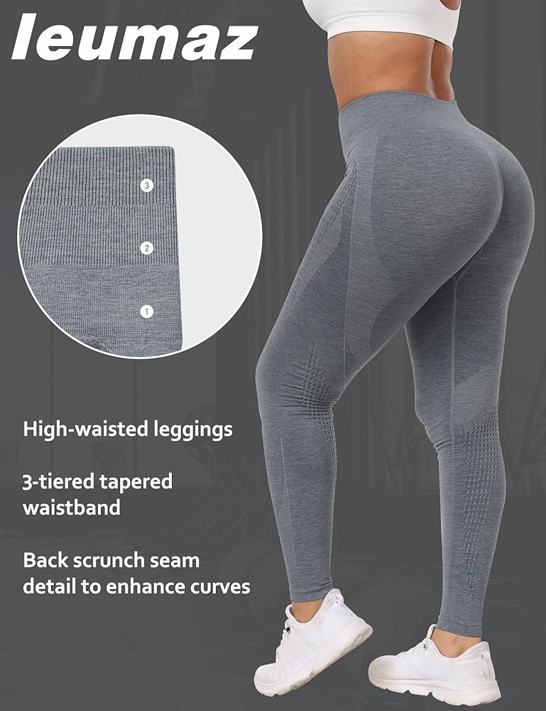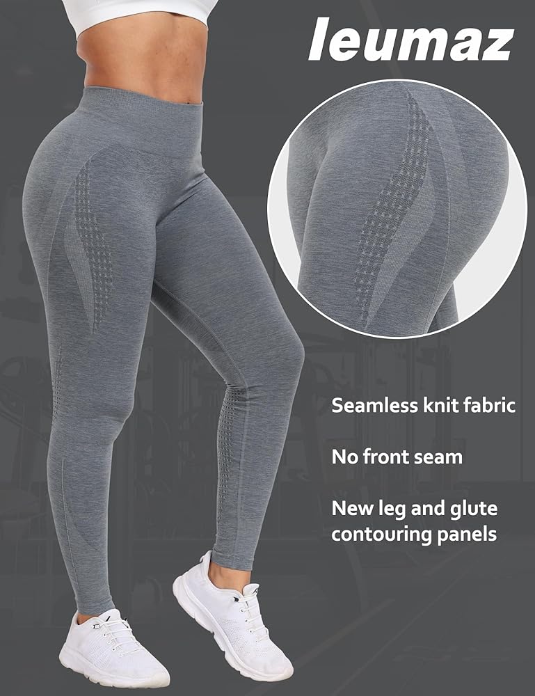 • Premium seamless knit fabric: Experience luxurious comfort with seamless leggings made from advanced knit fabric that feels like a second skin. The seamless design cuts irritation and boosts flexibility, for yoga, workouts, or daily wear