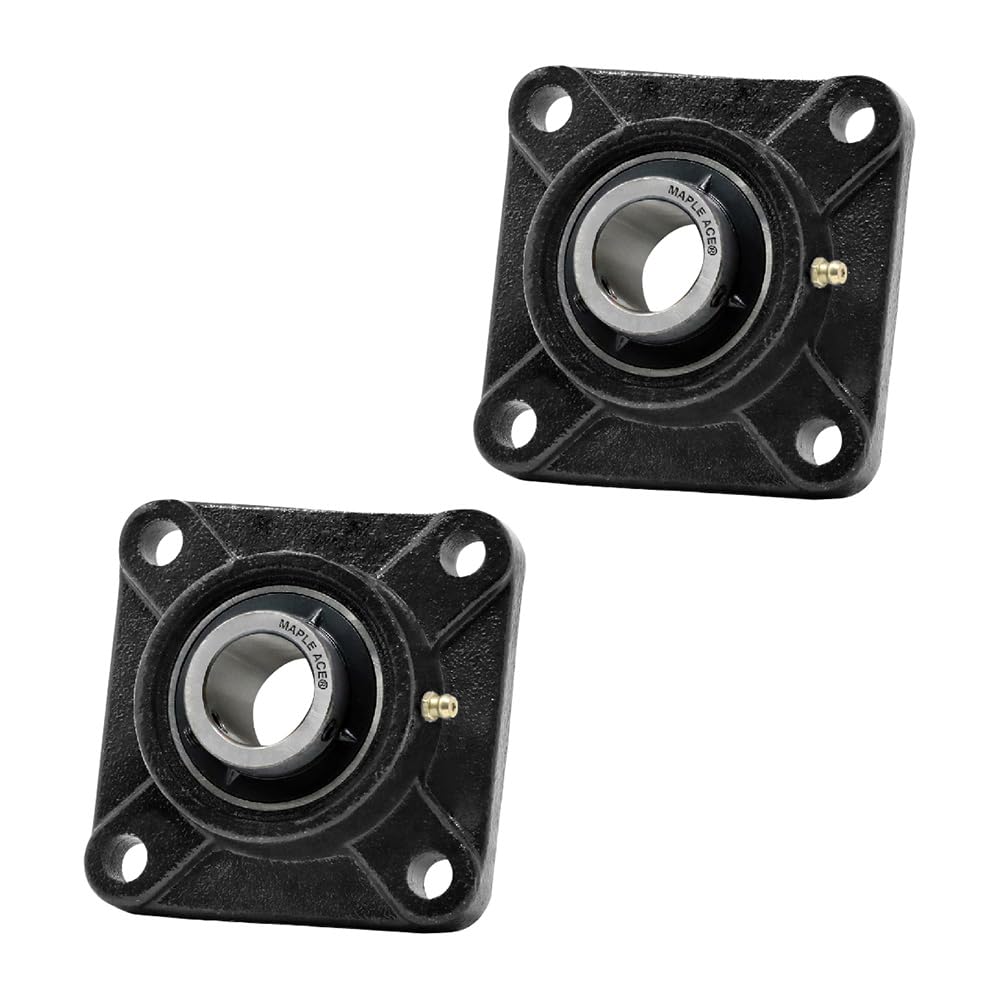 MAPLE ACE UCF205-16 Square Flange Bearing 1" Bore, 4-Bolt Self-Aligning, Solid Base, Heavy Duty (Qty 2)