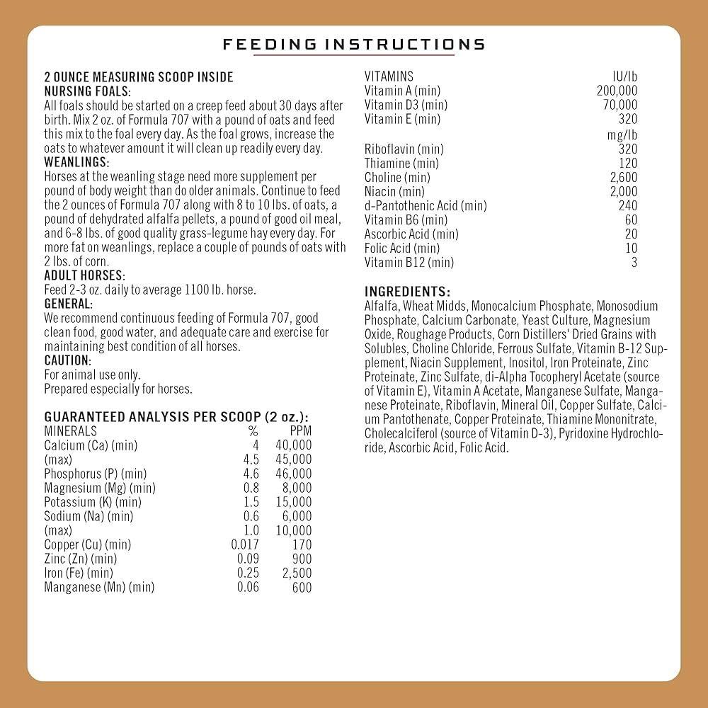 Formula 707 Daily Essentials Ration Balancer Supplement for Horses, 6 lb Bag – 48 Servings – Concentrated Complete Vitamin & Mineral Pellet