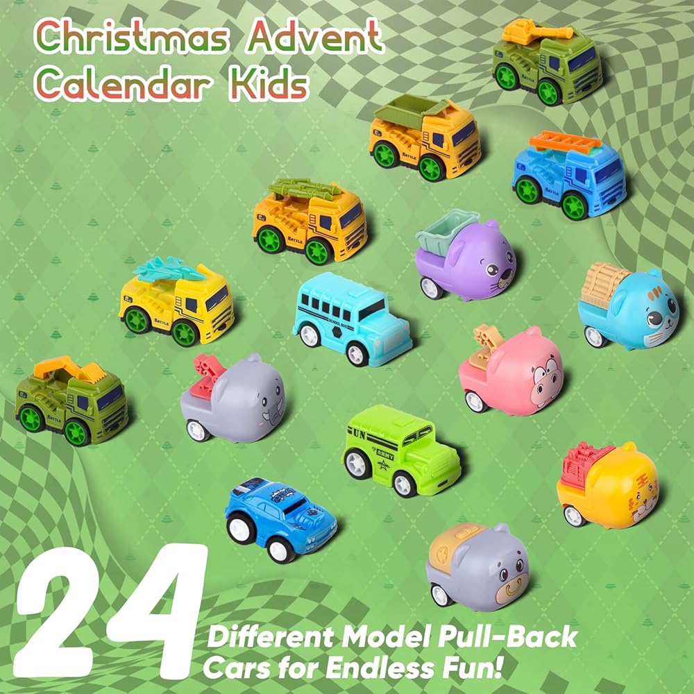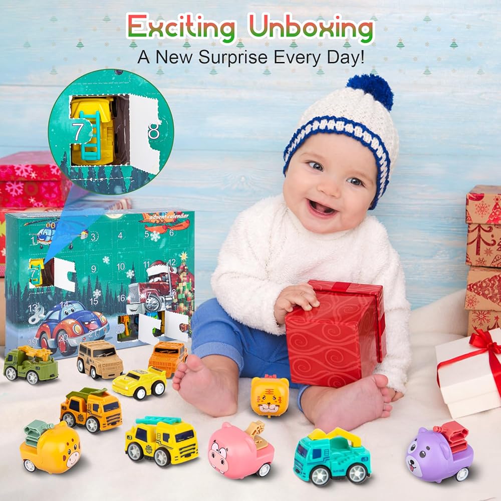 24 Surprise Advent Calendar 2024 for Kids: Our Advent Calendar 2024 for boys and girls comes with 24 different pull back car toys, including 12 animal-themed designs and 12 transportation-themed designs. This means your baby will have a new toy to play with every day leading up to Christmas, keeping them excited and engaged throughout the holiday season