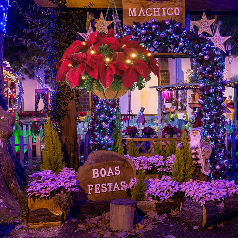 1. LED ARTIFICIAL FLOWER HANGING BASKET: Designed with LED warm lights, create a welcoming environment and add to the festive atmosphere, perfect for both indoor and outdoor use.