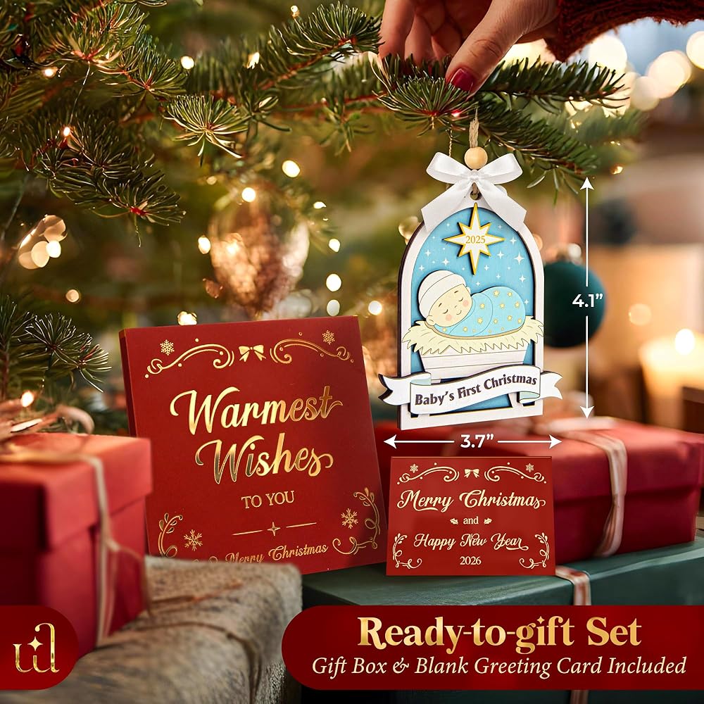 Babys First Christmas Ornament 2025 Boy - Baby Boy First Ideas for New Parents, Newborn Ornament Keepsake Babys First Xmas Ornaments for Xmas Tree Decorations