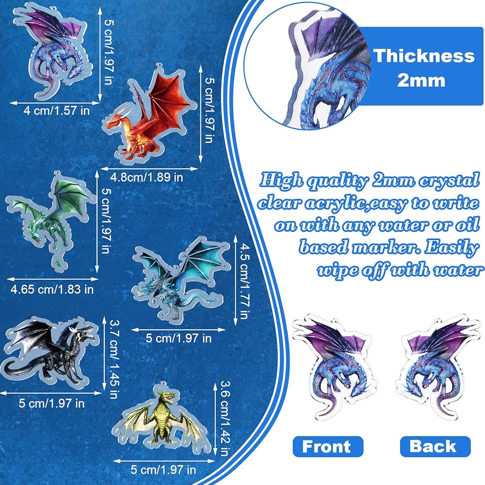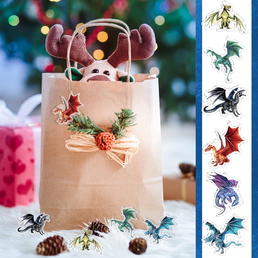 24 Pieces Dragon Christmas Tree Hanging Ornament Gothic Holiday Acrylic Festive Decoration with Ropes for Xmas Decor Gift Souvenir, 6 Styles, 1.97 Inches