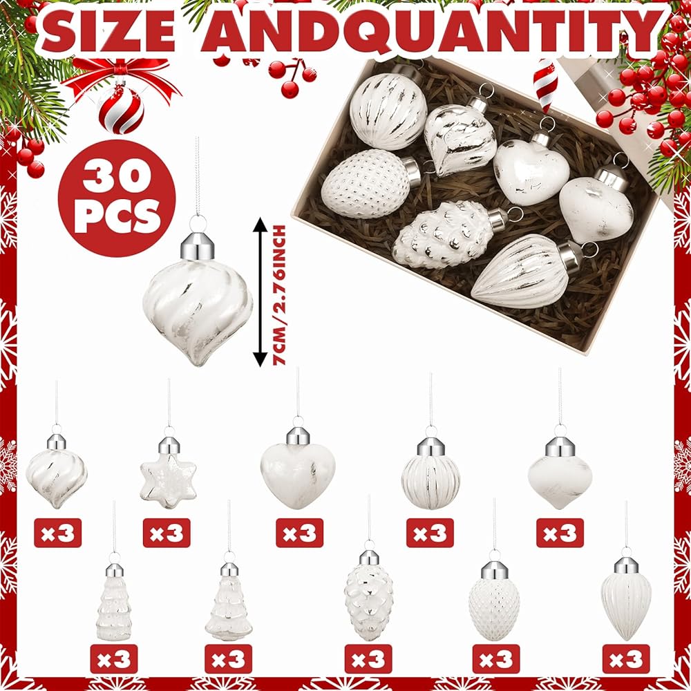 Timeless Elegance for Your Tree: elevate your holiday decor with our Retro Glass Christmas Ornaments. This set of 30 ornaments features 10 vintage-inspired designs in rich, vibrant colors. Ideal sized and crafted to last, they add a vintage charm that transforms your tree into a festive masterpiece.