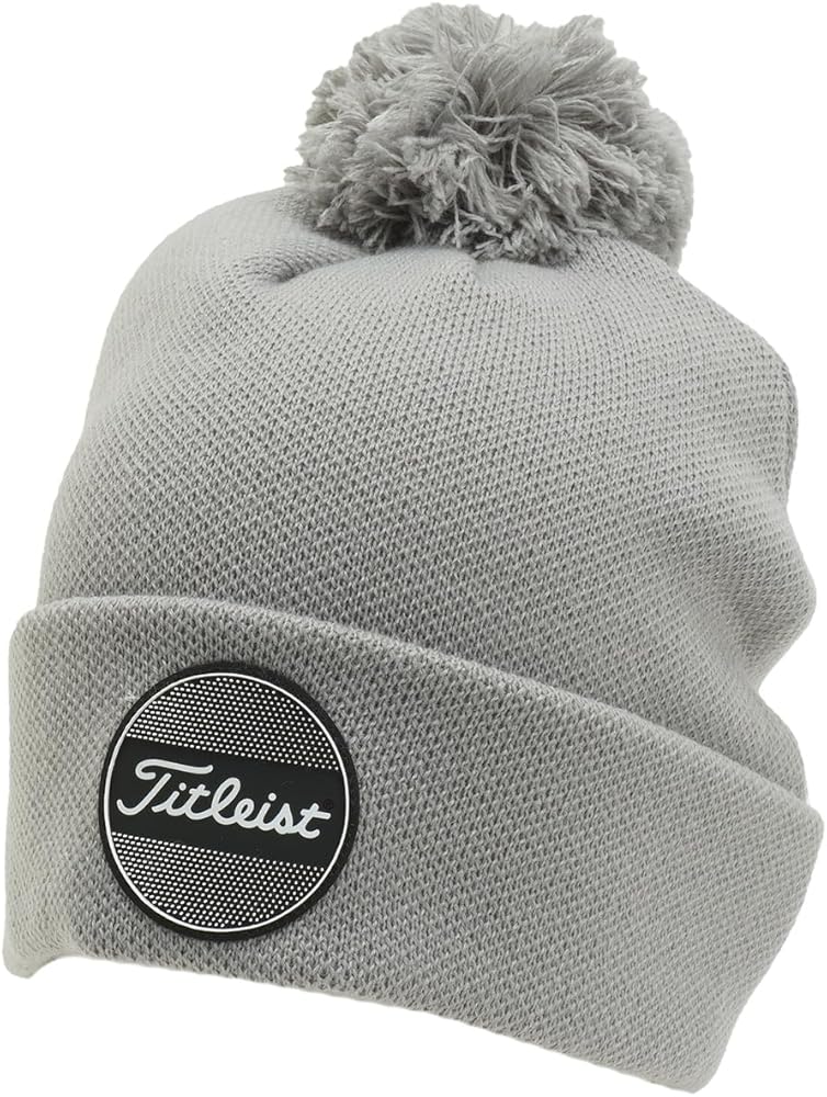 Titleist Boardwalk Pom Pom Golf BeanieFeatures: * Crafted with soft acrylic tri-color knit fabric * Microfleece performance liner for added comfort and warmth * Cuff design with pom pom on top for classic style * Boardwalk woven label patch design on cuff