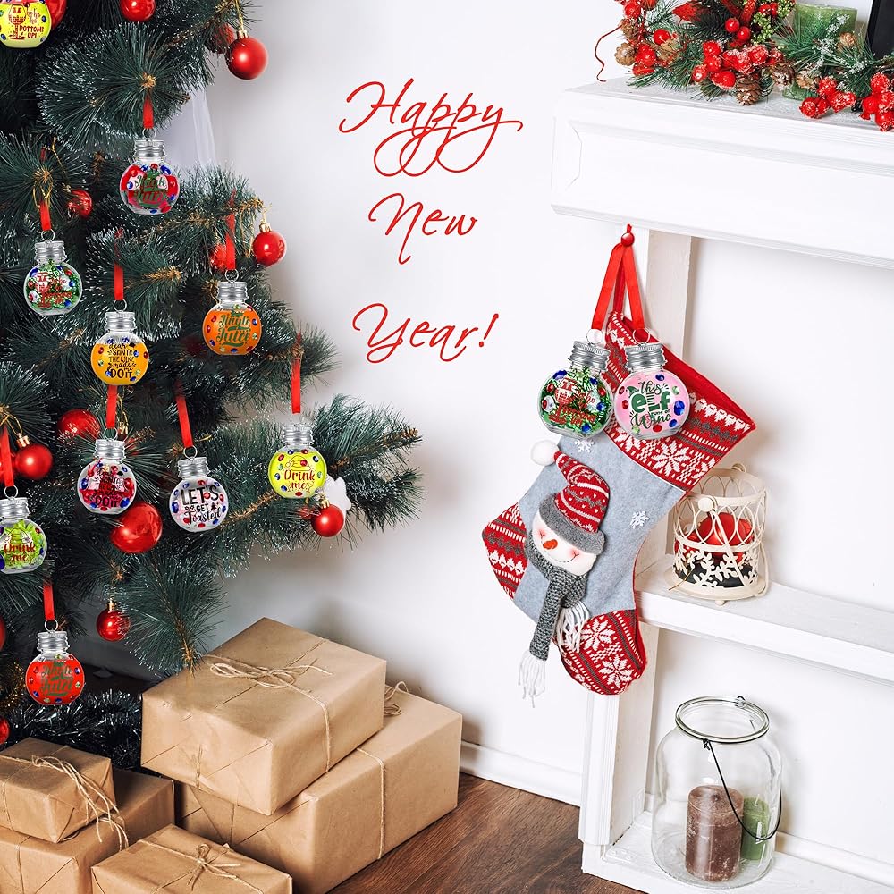 Convenient Hanging Feature: Our Christmas Booze Balls Ornaments come with a red hanging rope attached to the top of the silver bottle caps. This makes it easy for you to hang them wherever you desire, whether it's on your Christmas tree, around your home, or even on your dining table. The festive touch and convenient hanging feature allow you to elevate your decorations effortlessly.