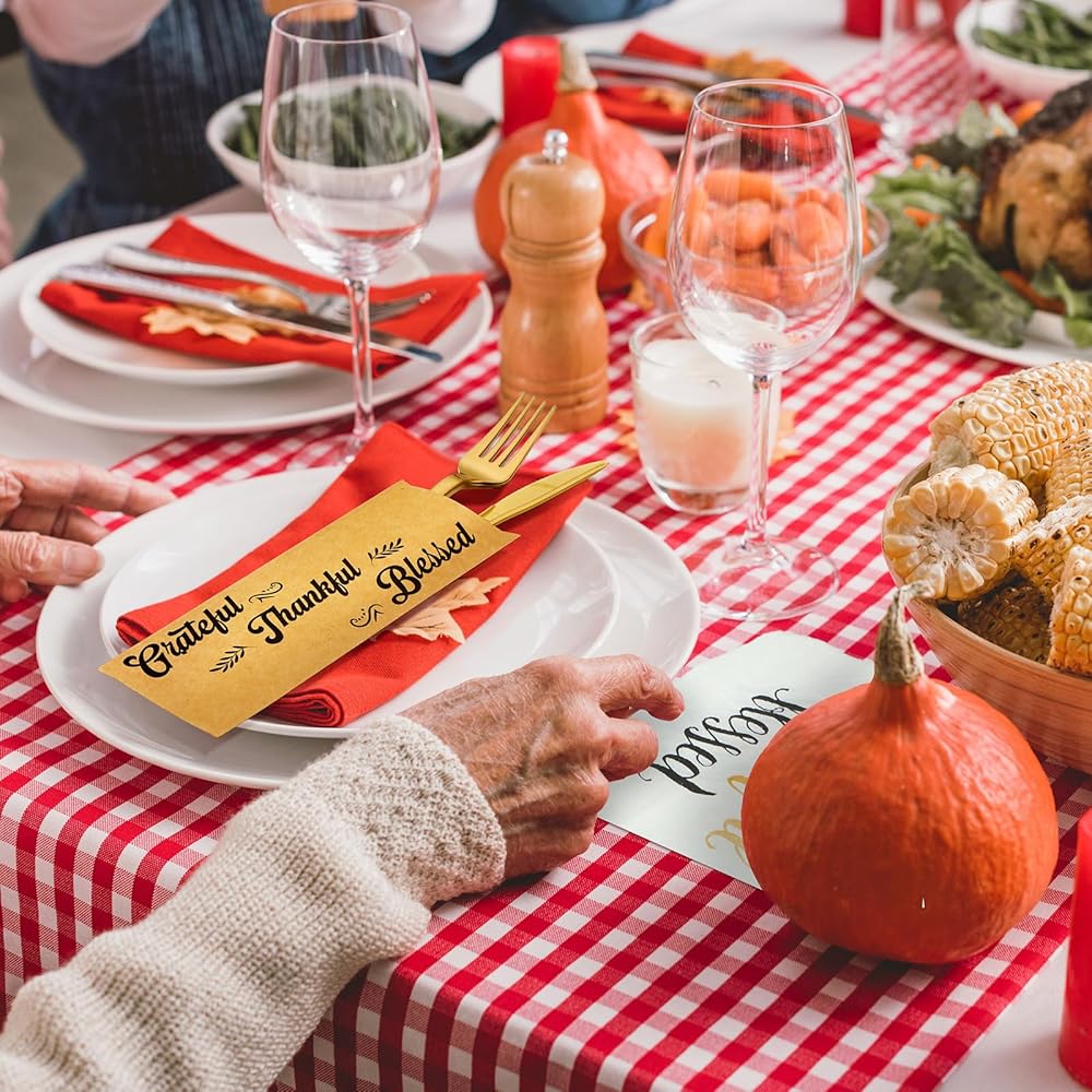 After the celebration, simply dispose of the Thanksgiving silverware wraps, Thanksgiving beverage napkins for easy cleanup and storage, saving you time and effort