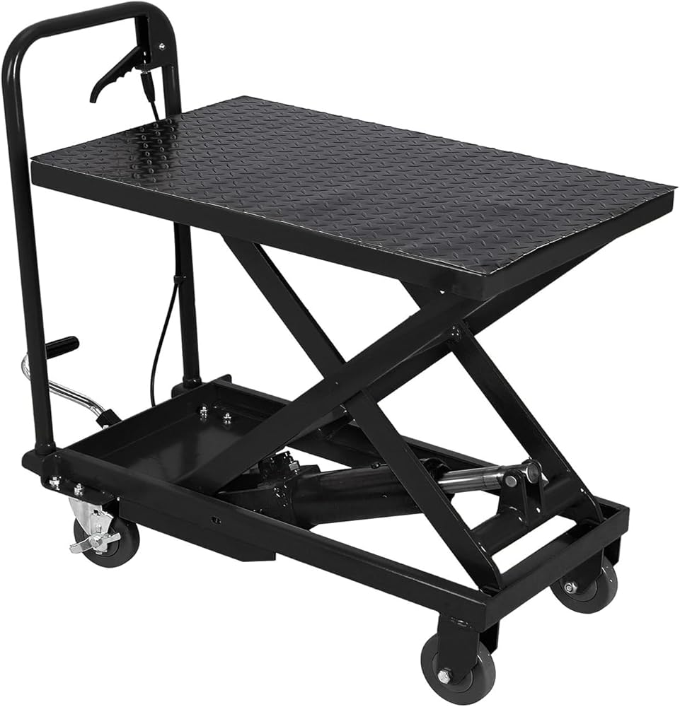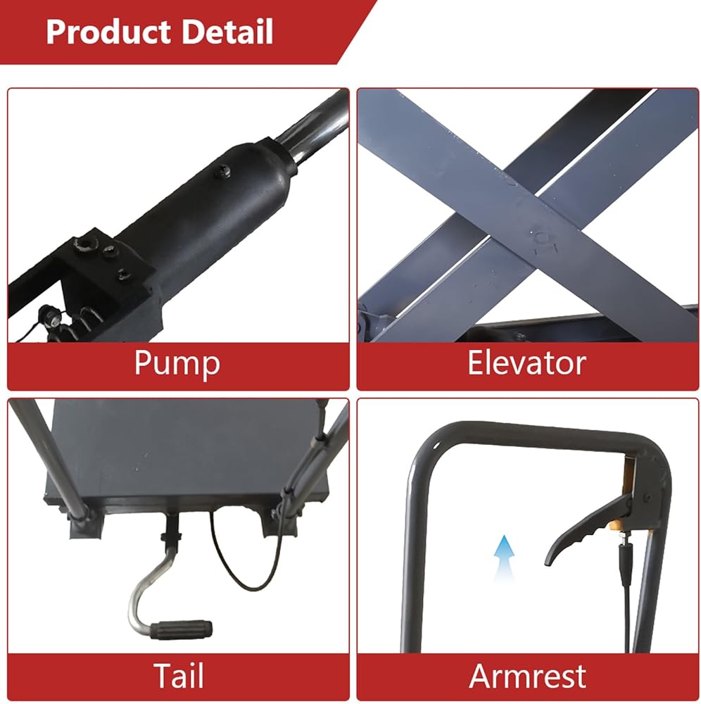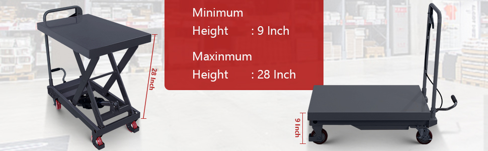 【Robust and Reliable】Constructed from heavy-duty steel, the hydraulic cart ensures ultimate durability, boasting a table dimension of 28'' x 18'' for added strength during heavy lifting tasks. Engineered for long-lasting performance.