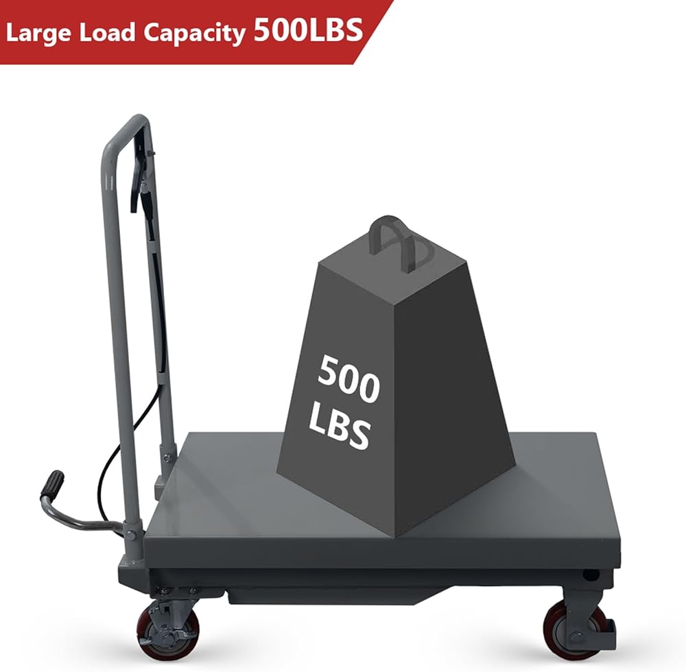 【Loading Capacity of 500LBS】Recognizing the challenges of handling heavy loads in daily routines, our materials cart is designed to make working with heavy loads a seamless process. With a maximum lifting height of 28.5'' and a 500LBS capacity, it exceeds workplace requirements.