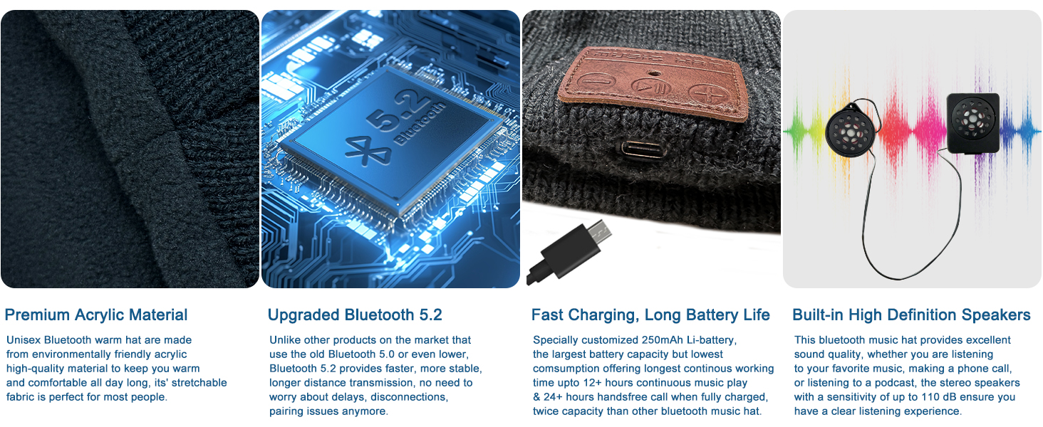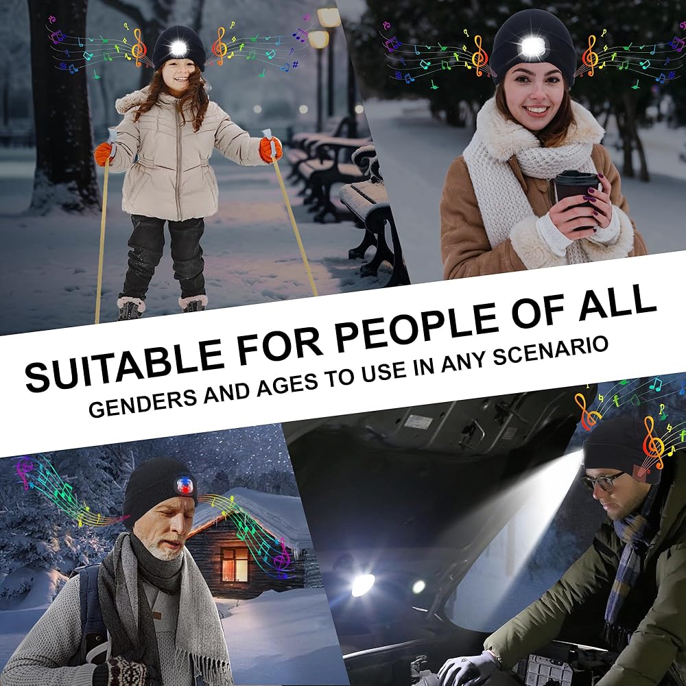 【UNIQUE TECH GIFTS】A must-have for a variety of outdoor winter activities, this winter warm bluetooth music led cap provides warmth, clear and pleasant sound quality, and practical lighting. Its fashionable style, exquisite packaging box and unisex design make it an ideal gift choice for your parents, grandparents, partners, friends and siblings on Halloween, Thanksgiving, Christmas, New Year and other holidays. If you have any questions about our bluetooth beanie hat, please contact us first.